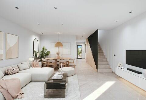 An opportunity to purchase a brand new three bedroom, two bathroom villa situated in the popular town of San Pedro del Pinitar, close to the beaches of the Mar Menor lagoon and the Mediterranean sea. The villas come with a private plunge pool in the garden, a sun terrace on the first floor and a solarium roof terrace. On the ground floor there is an open-plan living room with modern fitted kitchen and sliding doors leading to the garden, a ground floor bedroom, family bathroom and utility area. The first floor comprises two double bedrooms with fitted wardrobes, a bathroom and a sunny terrace. Stairs then lead to the solarium roof terrace. Outside there is a garden with plunge pool. These villas would be ideal for permanent living, holidays or rentals.