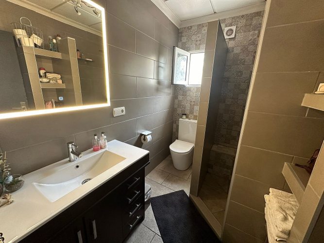 The main house has a large entrance room complete with a cosy log burner, this part of the house was originally the veranda having been glazed to add extra living space. There is a door which leads into another large lounge complete with log burner and air conditioning unit. There are four double bedrooms, one with patio doors leading out onto the patio area, there is also an air conditioning unit and electric radiator. There is also a nice bathroom complete with wet room. There is also a fully equipped kitchen.