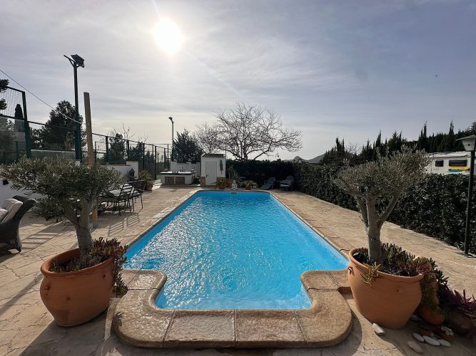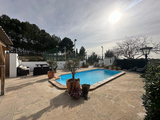 Lovely country home with full sized padel court . Four bedroom country house with fabulous outside space. This country house has the most amazing outside space perfect for the laid back Spanish lifestyle. There is a lovely pool,jacuzzi, padel court and a charming casita (converted from the garage).