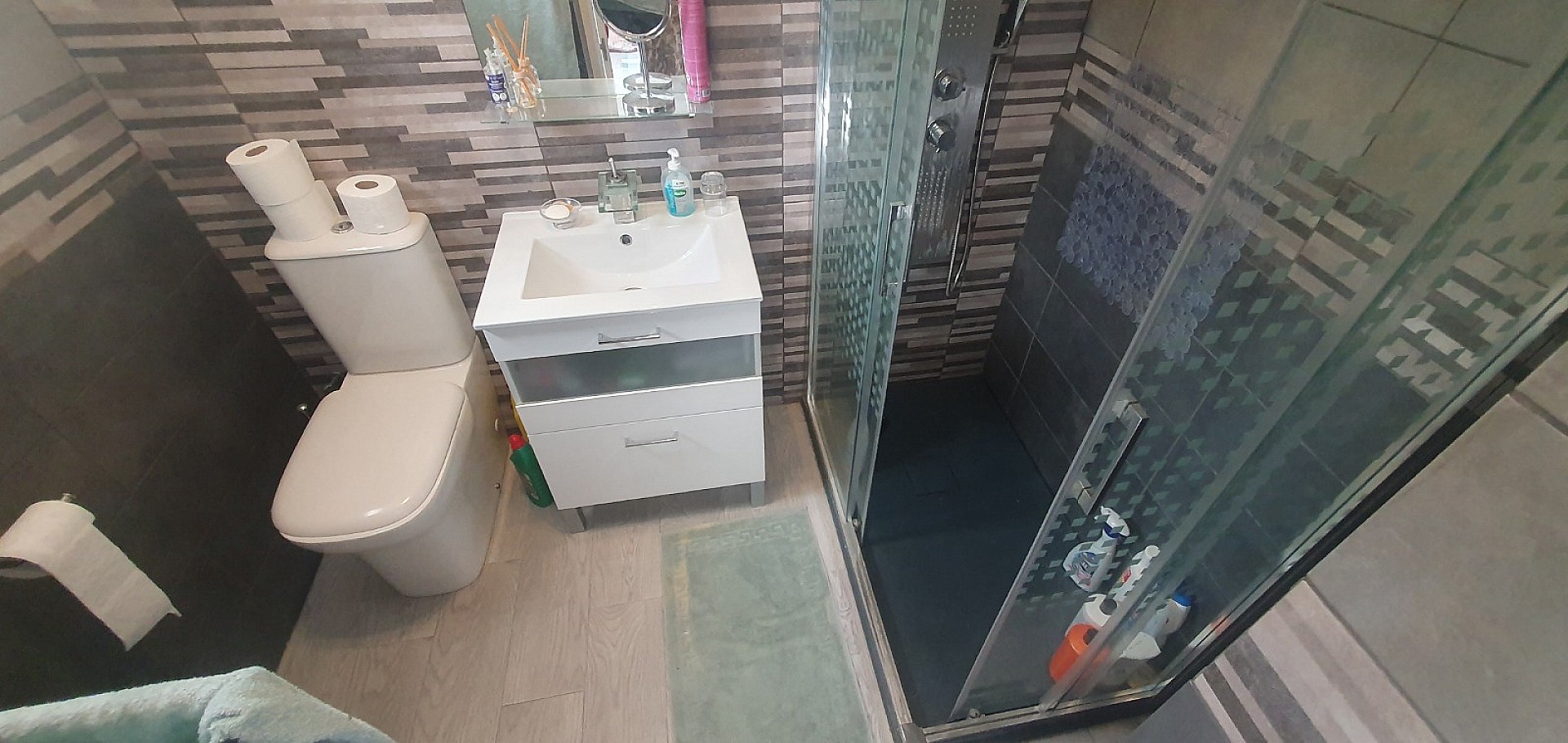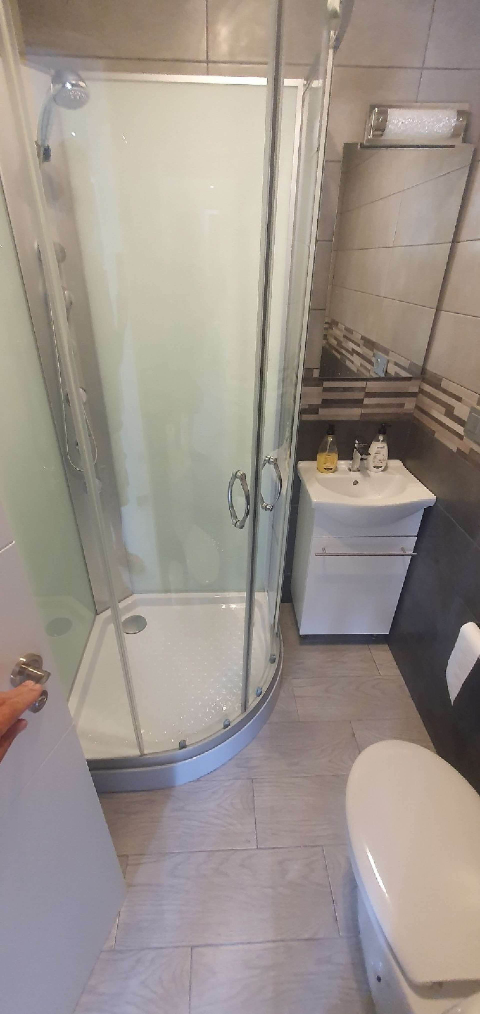 The bathroom for the pool also has the swimming pool pump and a washing machine in there, so it also doubles as a utility room.