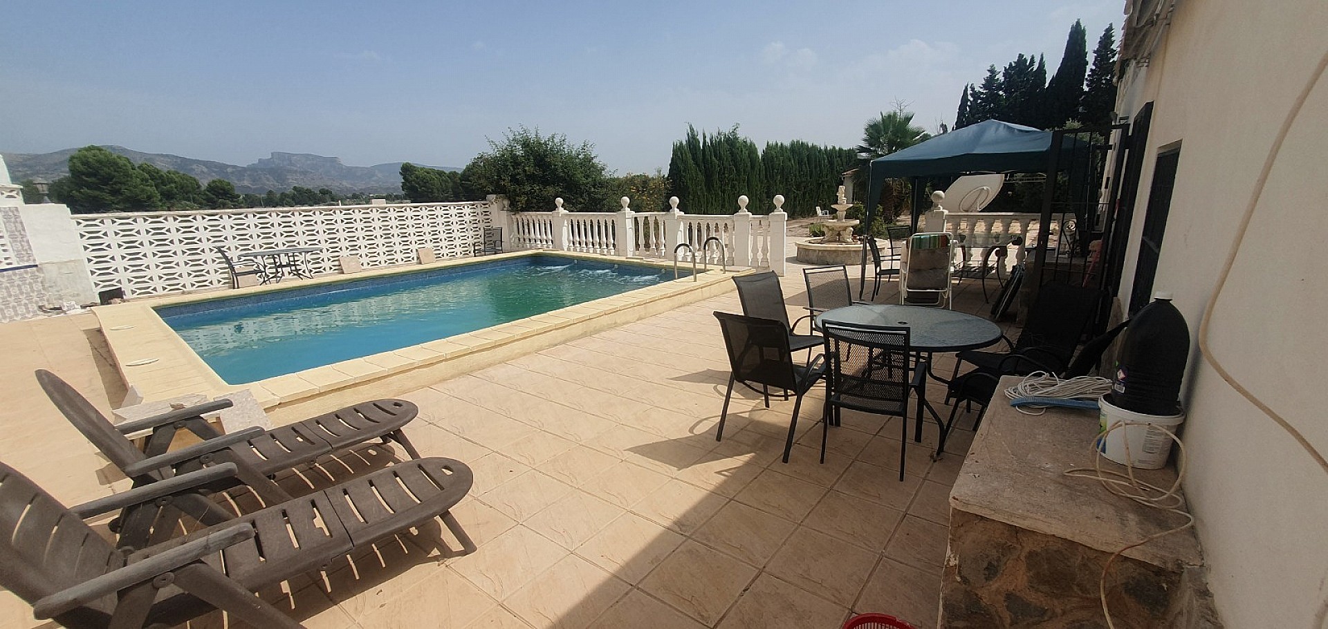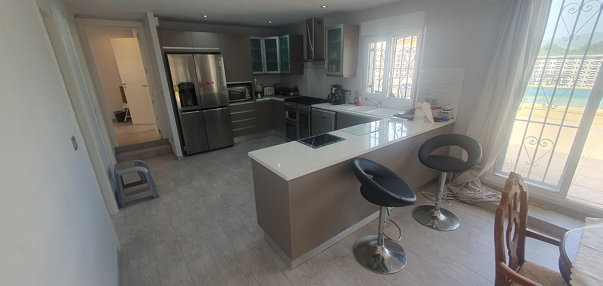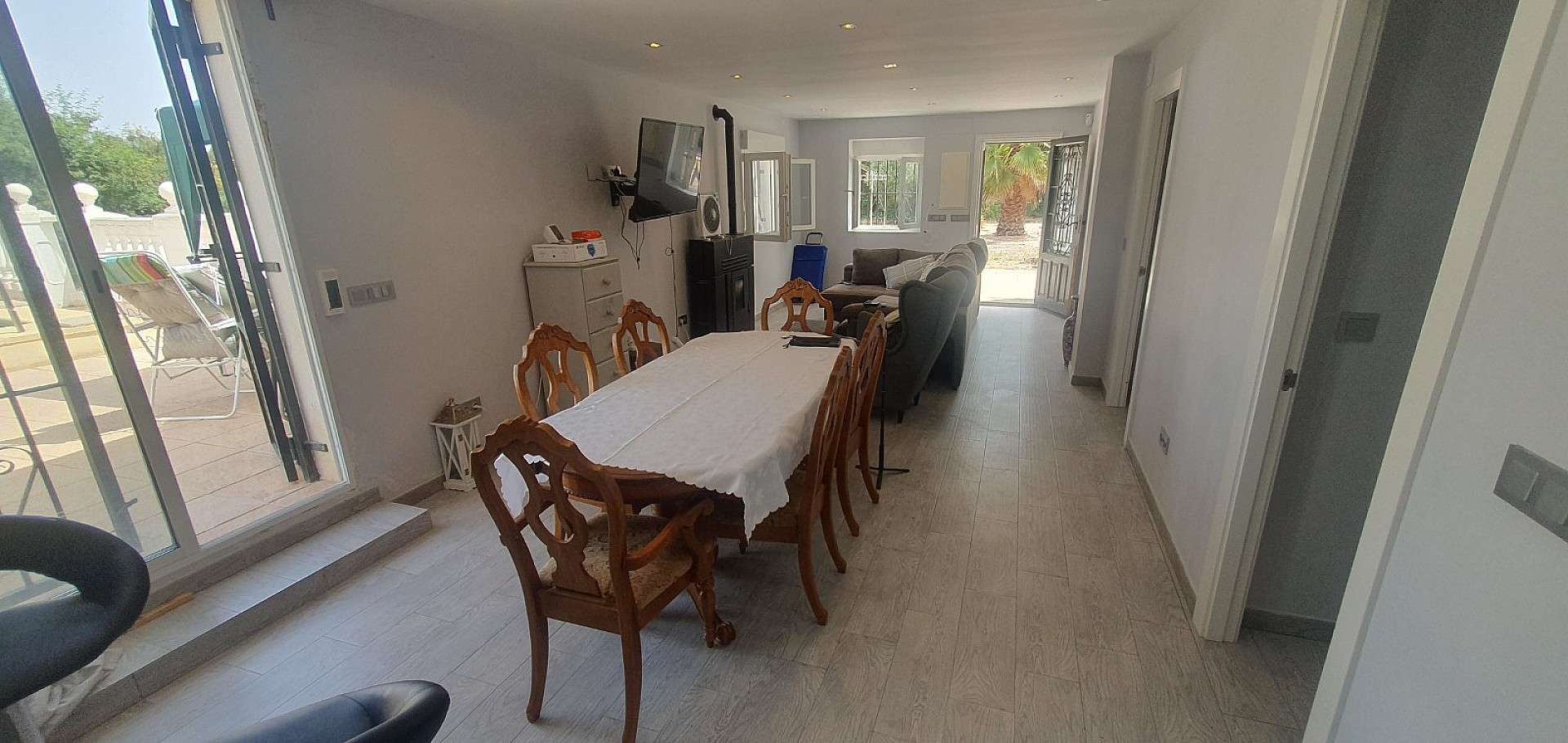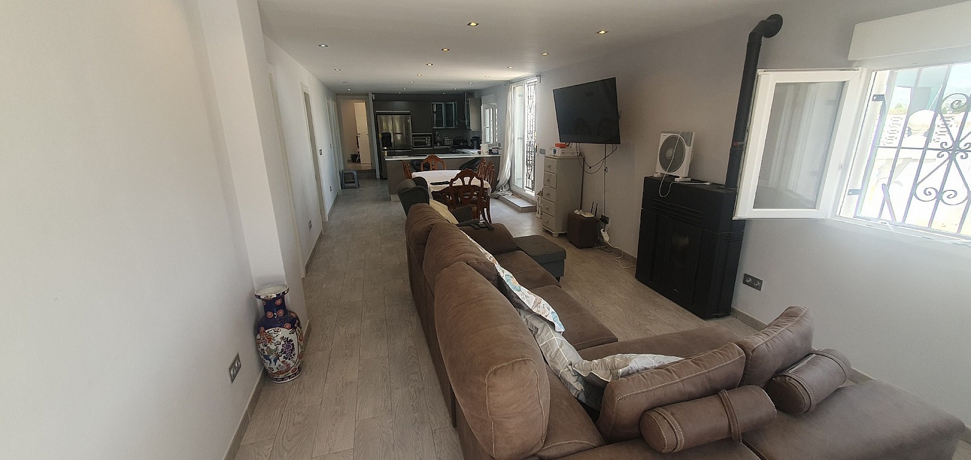The house has quality UPVC windows, ceiling fans, and also a large pellet burner for heating.
