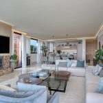 Exceptional four bedroom, south facing luxurious property in the prestigious La Reserva De Sierra Blanca, Marbella. This beautifully renovated ground floor duplex apartment has been designed and finished to the highest standard to provide elegant living in a prime location. The property consists on the entrance level of an open plan living and dining area with patio doors leading to the private terraces that boast stunning sea views; fully fitted open plan kitchen with high end appliances; the master suite with access to the terrace; two guest suites; and a guest toilet. The lower-level leads to an additional bedroom, bathroom, laundry area and a unique cinema area with bar; a relaxing area for entertaining. Other features include three privat parking spaces, storeroom, hot and cold air conditioning and underfloor heating throughout. La Reserva De Sierra Blanca offers residents beautifully kept gardens, swimming pool, gym, sauna and secure gated complex with 24hr security.