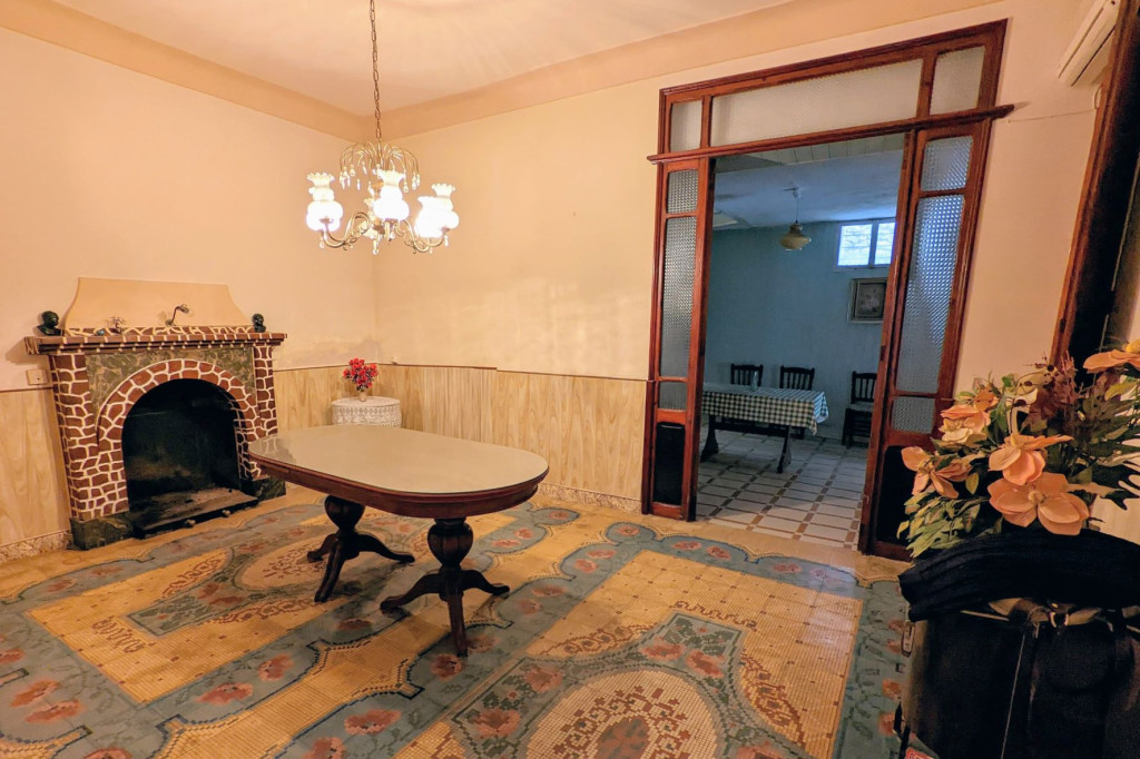 As we enter the house we find a hall full of well cared and handmade mosaics, as well as the wooden doors that give us access to the living room with fireplace, a single room on the left hand side and on the right hand side a large bedroom en suite. Passing the living room we arrive at the kitchen, after it, going down some stairs, we will see the dining room that gives us access to a bathroom, to a lower area where we find a wine cellar and finally the patio.