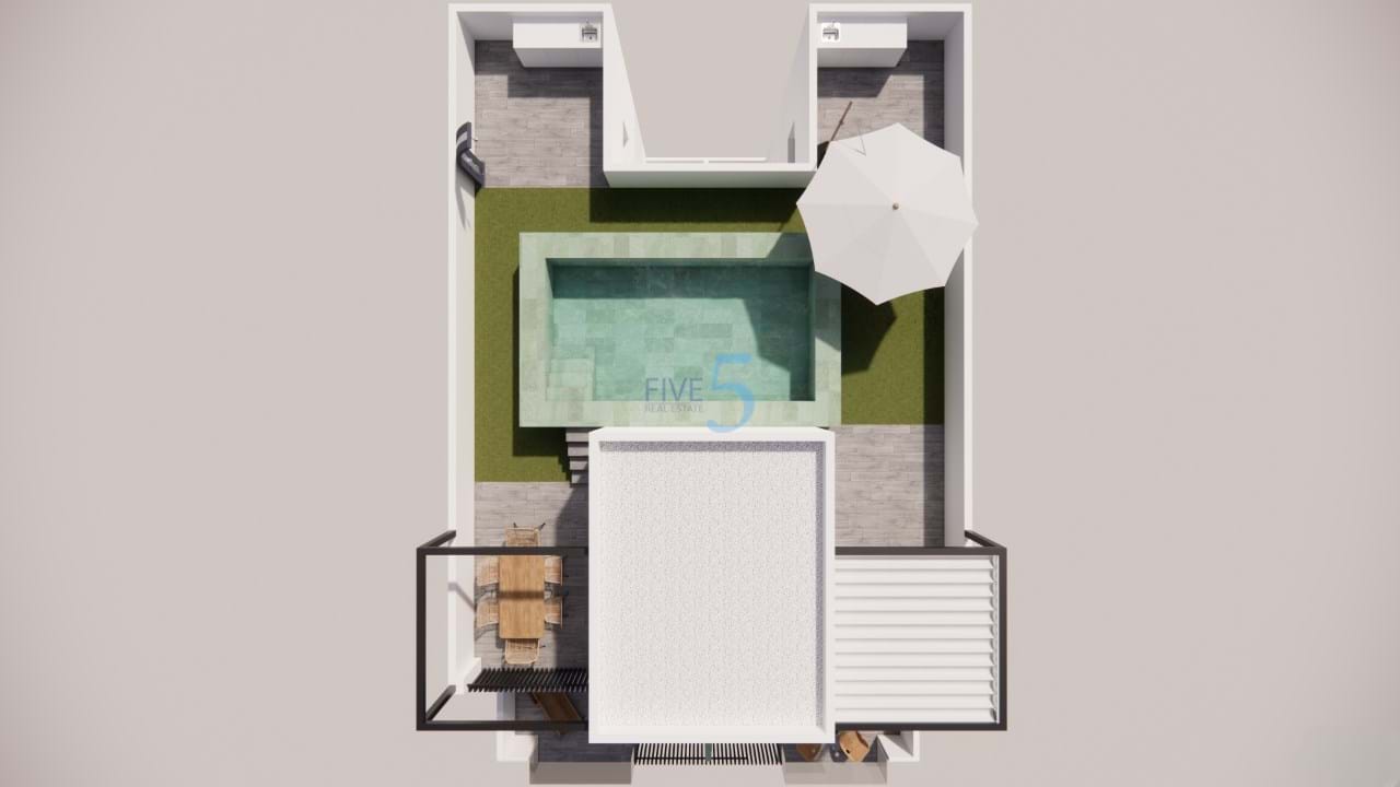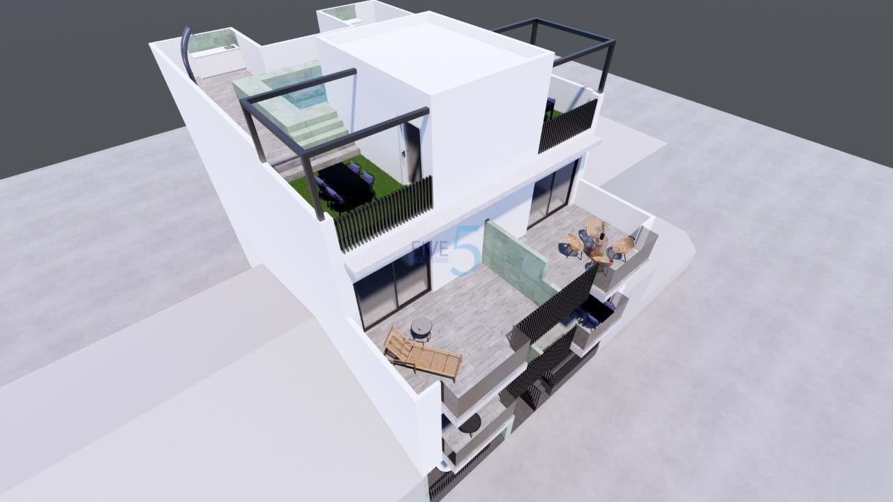 The interiors of these properties are designed with attention to detail and functionality. Each apartment and ground floor features two bedrooms and two bathrooms, offering a comfortable and well-distributed space. The tiled floors add a modern touch and are easy to maintain. Built-in wardrobes in the bedrooms provide ample storage space, while the pre-installation of air conditioning ensures the home is ready for comfort in all seasons. The layout includes a terrace, extending the living space outdoors, allowing enjoyment of the climate and views.