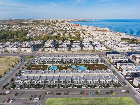 The complex benefits from a communal swimming pool, surrounded by a playground and green parks. The location is great, just a short walk to the sea and the town of Torre de la Horadada which hosts a variety of restaurants, bars and cafes, plus only a fifteen minute drive to the the airport. Ideal for year round living.