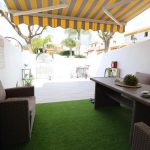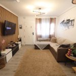 Torre de la Horadada – Residencial Cañada Real . We present this charming duplex townhouse located directly in front of the communal pool, in one of the most pleasant residential complexes in the area.. . The property offers a built area of 70 m², distributed over two bedrooms, two bathrooms, a bright living-dining room, a fully equipped open-plan kitchen, and a spacious rear patio—ideal for laundry or storage.. . At the front, there is a large tiled terrace of approximately 20 m² with direct access to the pool, perfect for enjoying the sun and landscaped surroundings. . The home is sold fully furnished and equipped, including air conditioning.. . The residential complex features extensive green areas and two communal pools, offering a quiet, well-maintained, and family-friendly environment just minutes from the beach and all essential services.