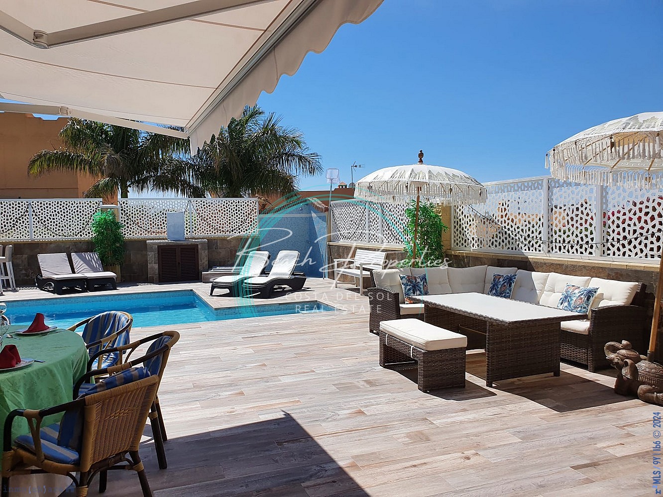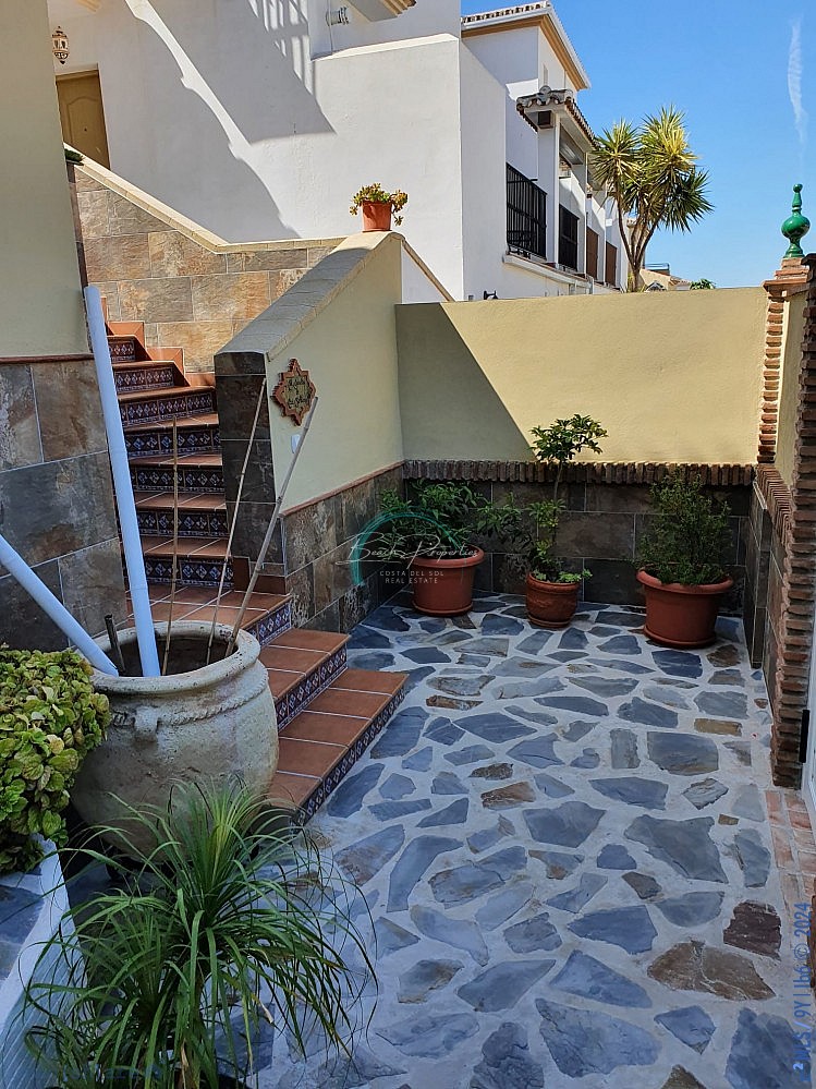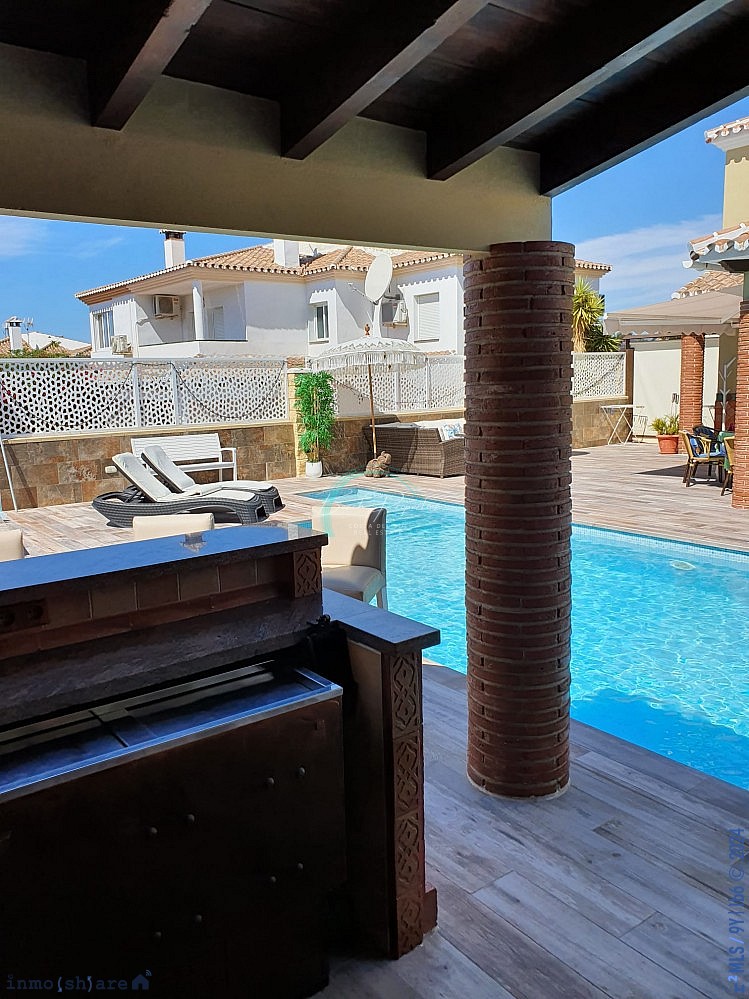 For sale Semi-detached house in Viña Málaga, consists of 3 bedrooms, 3 bathrooms, toilet, kitchen, living room with fireplace, swimming pool, barbecue, garage, solar panels and is sold furnished.