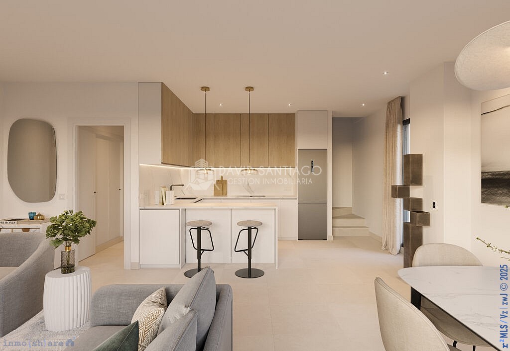 Development located on a natural balcony with spectacular sea views. Quiet and well-connected environment with consolidated towns and various beaches. Urbanization with landscaped common spaces and communal pool. It is a project adapted to the topography, with a sustainable concept, consisting of 45 semi-detached single-family homes with 3 bedrooms, southeast, south and southwest orientation and incredible sea views. All of them will have a car park and large terraces. METHOD OF PAYMENT: • Deposit (10,000+VAT): At the time of booking. • Contract (20%+VAT): • Deferred (10%+VAT): in a single payment or divided into monthly instalments from the signing of the contract until the end of the work, scheduled for May 2028. • Delivery (70%+VAT)