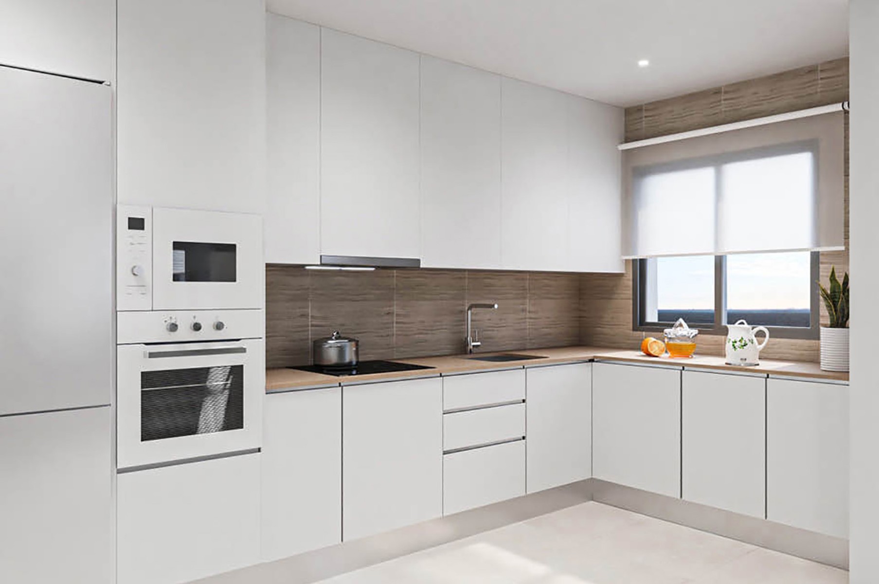The apartments are distributed over 3 floors which can be reached by a lift. The apartments are spacious and light, designed to let daylight flood through the rooms. We living room leads into the open plan kitchen. There is a communal swimming pool and all apartments have their own solarium, underground garage and storage room.