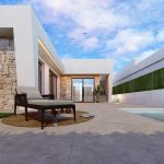 New Build Independent Villas with Private Pool and Solarium in Roldán, Torre-Pacheco Modern Single-Level Villas with Exclusive Design These brand-new 3-bedroom, 2-bathroom villas in Roldán, Torre-Pacheco, offer a contemporary and eco-friendly design with comfort and lifestyle in mind. Built on a single level, each home features a spacious open-plan living and dining area with a fully equipped modern kitchen, seamlessly connected to large terraces and a rooftop solarium. The villas are thoughtfully designed to blend functionality and aesthetics, with angled stone-clad facades, sleek finishes, and plenty of outdoor space to enjoy the Mediterranean sun all year round. Private Outdoor Space and Premium Features Every villa comes complete with: Private swimming pool and outdoor shower Roof-top solarium with ample space for sunbathing or creating a chill-out zone Terrace and garden areas on the ground level Private driveway for off-road parking LED lighting package for both interior and exterior Pre-installed air conditioning system The master bedroom includes an en-suite bathroom, while two additional bedrooms share a family bathroom, all designed with a contemporary touch and high-quality finishes. Ideal Location Close to Beaches and Golf Roldán is a charming Spanish town in the municipality of Torre-Pacheco, known for its traditional ambiance and complete range of daily services, including supermarkets, restaurants, healthcare facilities, and schools. The location offers proximity to several key attractions: Corvera Airport (RMU) € 15 km Beaches of the Mar Menor and Mediterranean Sea € 20 km Golf courses (La Torre Golf and Las Terrazas de La Torre) € within 4 km Cartagena city centre € 32 km Zenia Boulevard Shopping Centre € 35 km Marina of Los Alcázares € 22 km Whether you're seeking a holiday home, permanent residence, or a strong rental investment, this location offers easy access to coastal attractions, sports facilities, and urban convenience. Your New Life in the Sun Awaits Don€t miss the opportunity to own one of these stylish new villas in Roldán. Contact us today for more details, to arrange a visit, or to secure your new home on the Costa Cálida before they're all reserved.