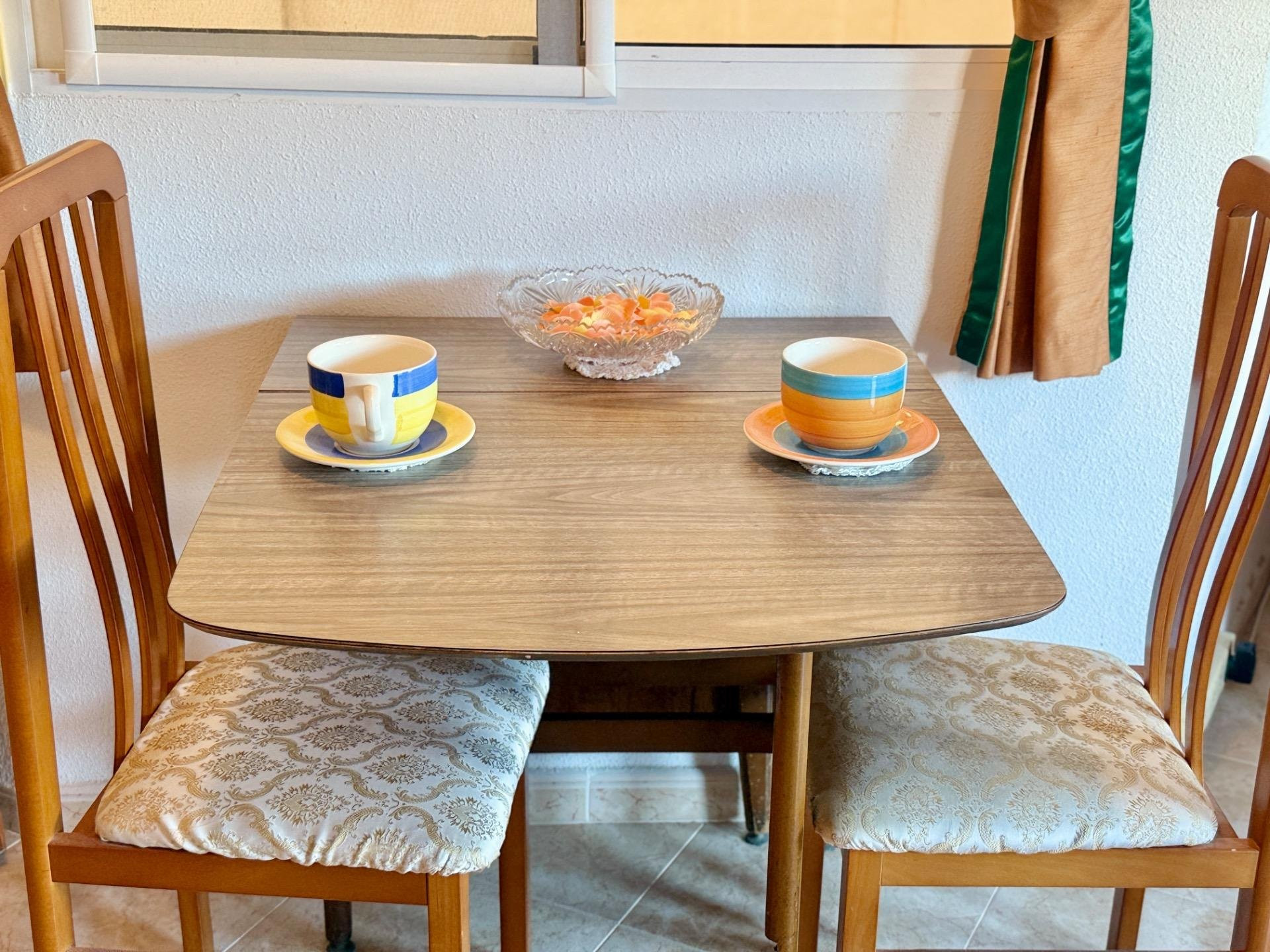 Bright and functional studio on the second floor of the sought-after Europa 2 residential complex, next to Parque de las Naciones in Torrevieja. With its east-facing orientation, it receives wonderful morning sunlight and has a comfortable, inviting atmosphere throughout the day. The studio comes furnished and in good condition, ready to move in with no work required. It features a separate, fully equipped kitchen with an exterior window for extra light and ventilation. The main living space is spacious, with a clear division between the living and sleeping areas—ideal for maximizing comfort and flexibility. There is also a pleasant private terrace, perfect for sunny breakfasts or relaxing outdoors. Europa 2 offers a communal swimming pool, well-maintained common areas, and a peaceful atmosphere, all just a short walk from supermarkets, public transport, shops, and all urban amenities of central Torrevieja. An excellent option for both year-round living or as a high-yield holiday investment.