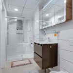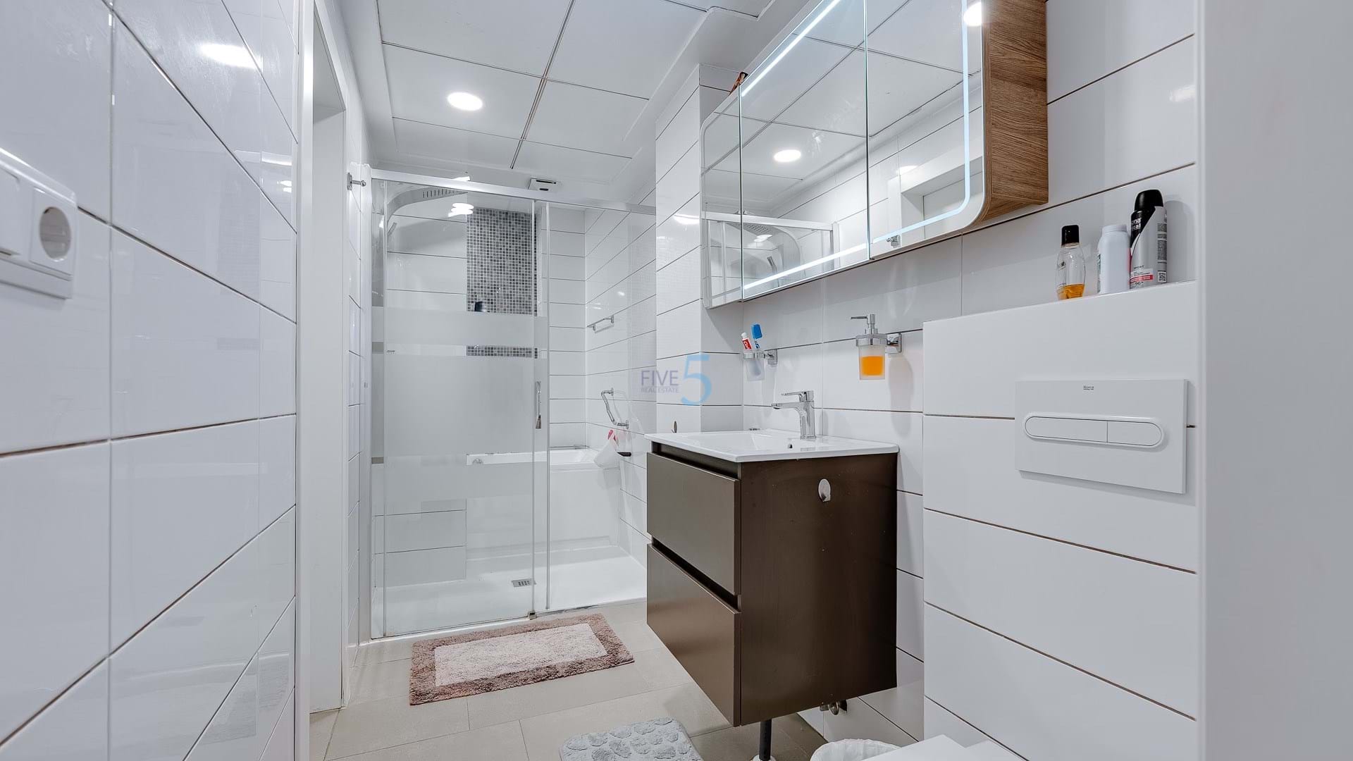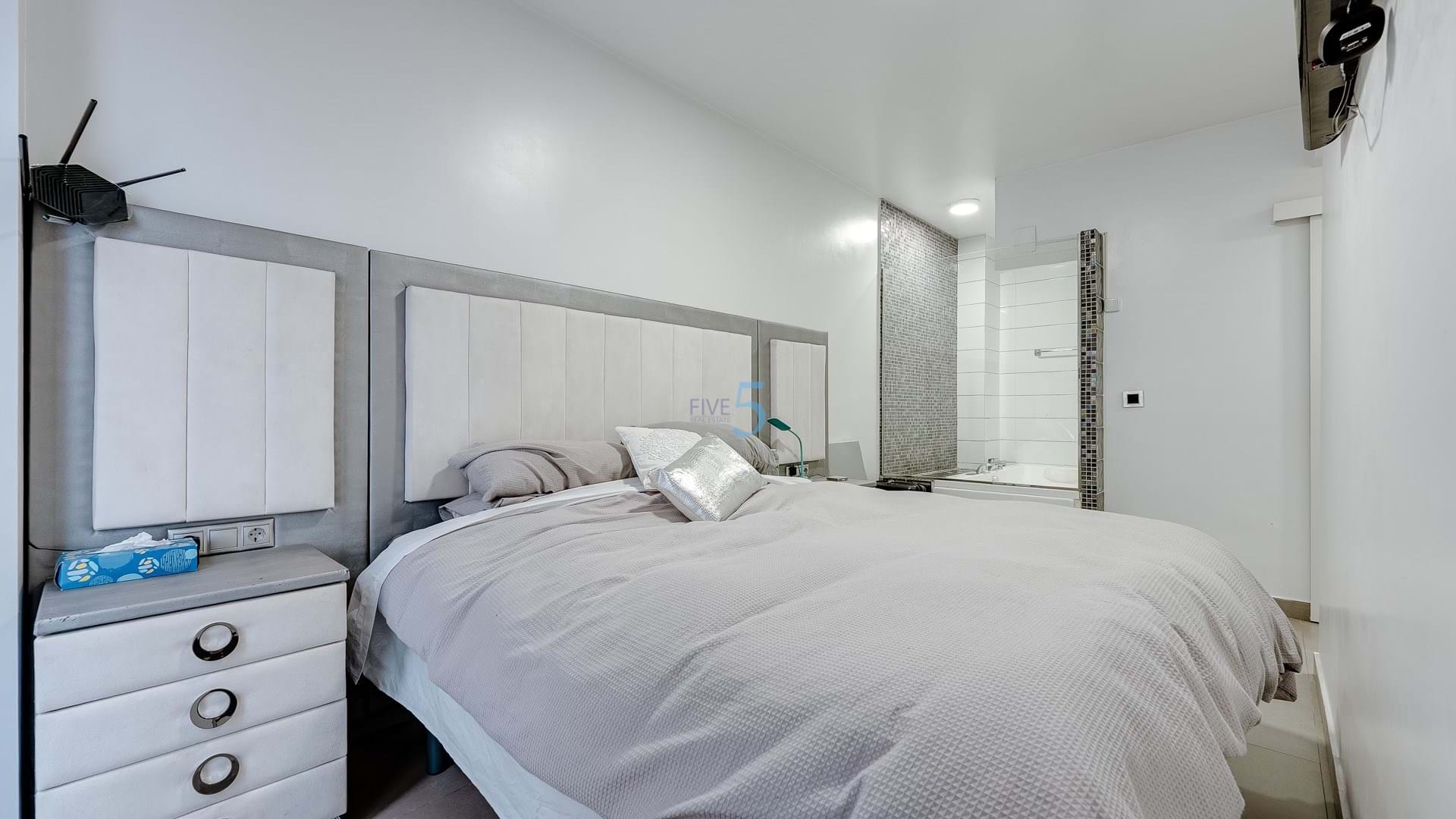 Inside, the apartment is spacious and well-designed, featuring a double bedroom with built-in wardrobes. There is also another double bedroom, which has been thoughtfully renovated and includes its own en-suite bathroom. This bedroom has access to a private balcony, offering a peaceful outdoor space to enjoy the fresh air. The master bedroom is particularly impressive, with a large walk-in wardrobe that provides ample storage space. The master suite also boasts its own luxurious en-suite bathroom, complete with a full wet room. This indulgent en-suite includes a walk-in shower and a jacuzzi bath, offering the perfect space for unwinding after a long day.
