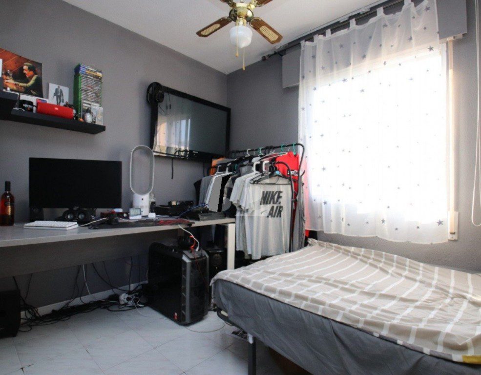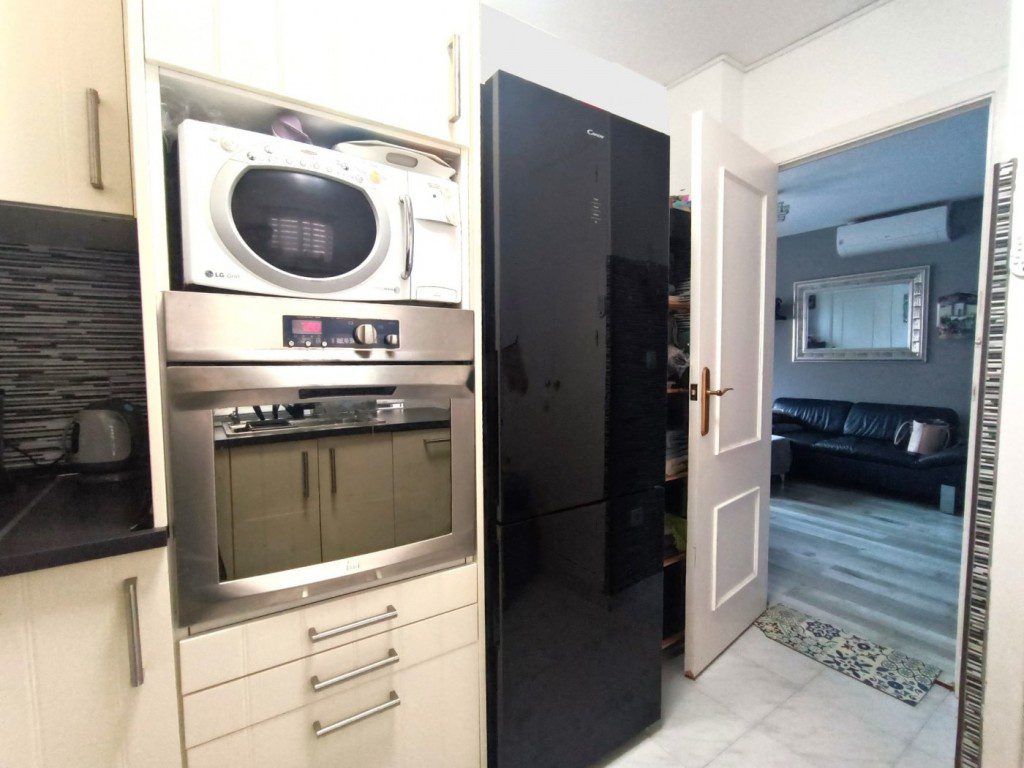 Entrando la vivienda encontramos el salón con aire-acondicionado, el dormitorio principal, la cocina equipada, el baño con bañera, el cuarto con la lavadora y el balcón. Subiendo la escalera interior desde el salón llegamos al pasillo con acceso al segundo dormitorio y el solarium.