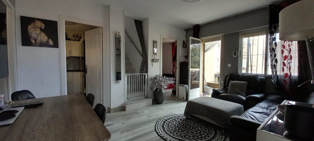 Entering the property we have the living room with air-conditioning, the master bedroom, the fully equipped kitchen, the bathroom with bathtub, the room with the washing machine and the balcony. Going up the interior staircase from the living room we reach the hallway with access to the second bedroom and the roof terrace.