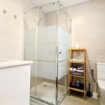 This apartment comprises four double bedrooms, three of which feature ceiling fans and fitted wardrobes. The fourth bedroom is currently used as an office, providing a versatile space for work or relaxation. All four bedrooms share two well-appointed shower rooms, one of the shower rooms is located on the interior south-facing balcony, and also offers a convenient storage room.