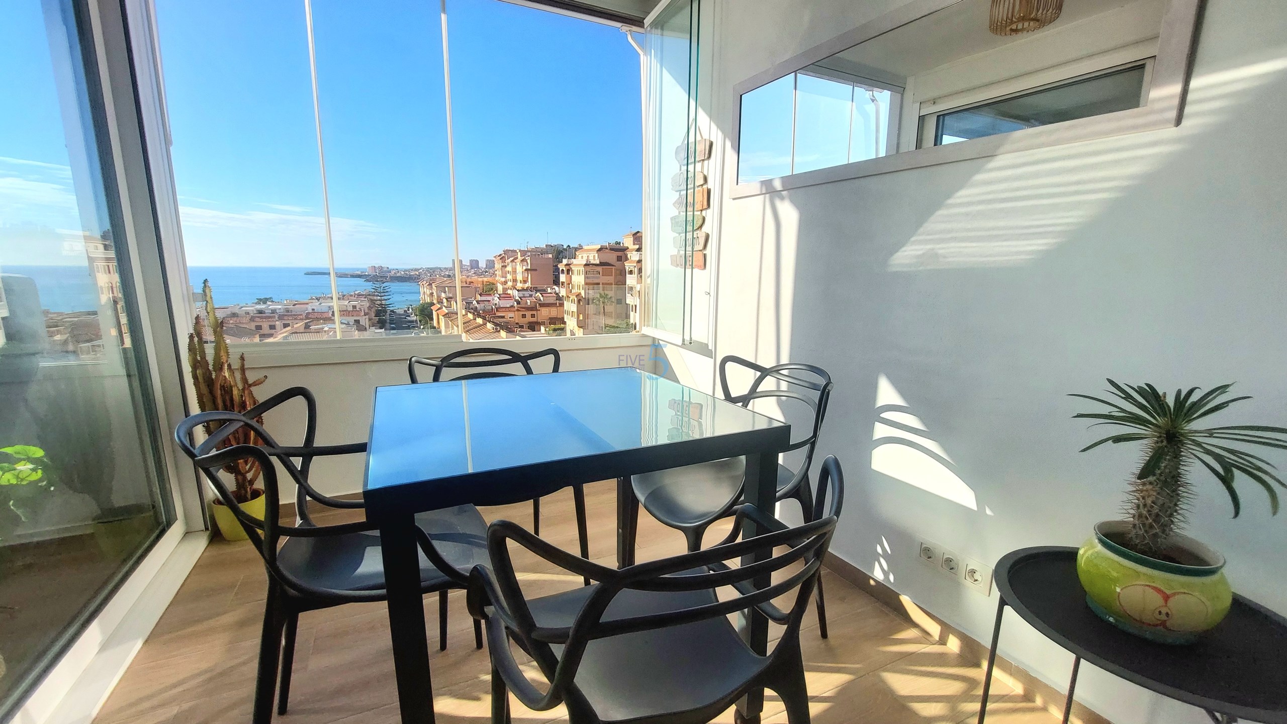 5 Real Estate is delighted to market this stunning, south-facing, renovated, 2-bedroom, 1-bathroom top-floor apartment in the sought-after area of La Mata, with an elevator, for added convenience, and a terrace with panoramic sea and city views, and perfectly situated close to all the local amenities.