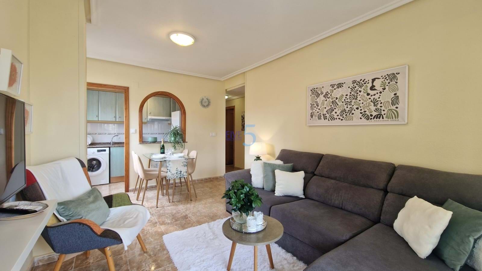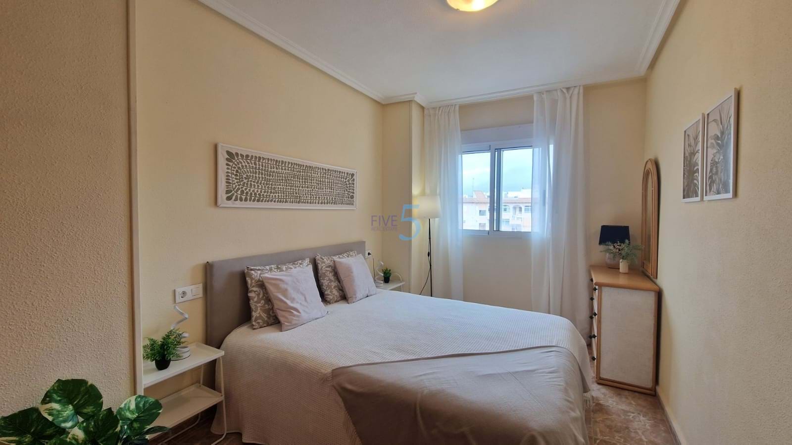 5 Real Estate is delighted to market this second-floor apartment in Torrevieja, featuring a communal pool and solarium with sea views, an elevator, and air-conditioning for year-round comfort.