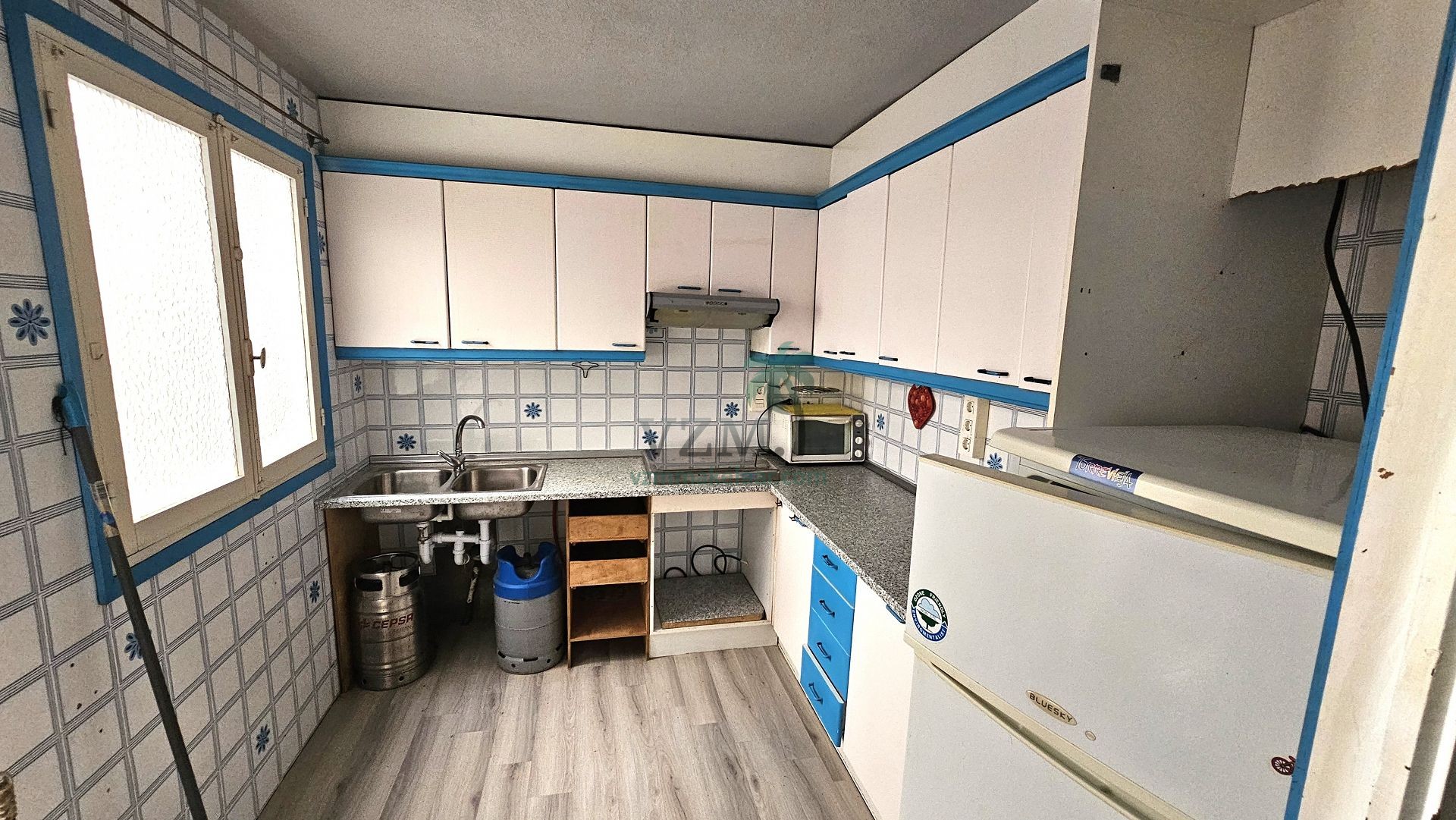 Separate kitchen with terrace, in need of renovation.