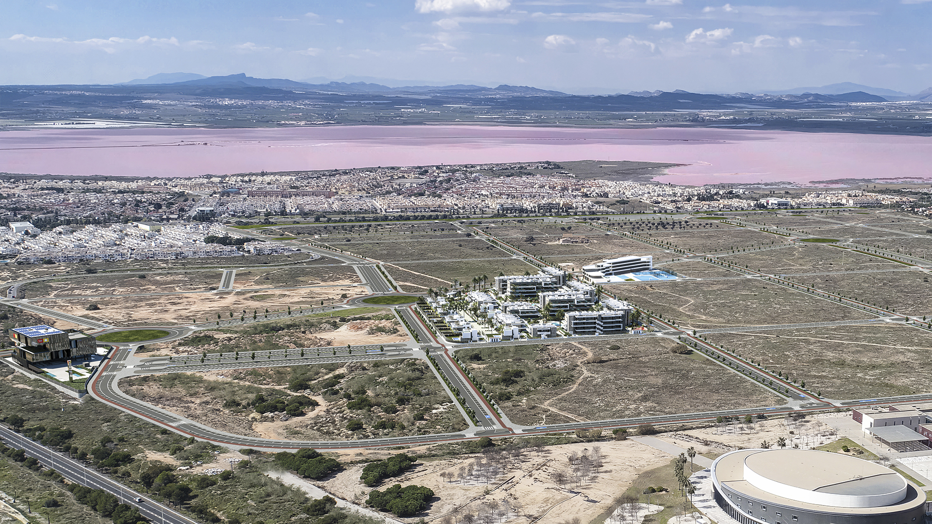 These apartments are part of a unique project which will be located in a privileged natural environment, between the Natural Park of Lagunas de La Mata and the Pink Lagoon of Torrevieja. The first residential area will contain 240 homes of different types, such as apartments, bungalows, terraced and detached villas with 1, 2 and 3 bedrooms and 2 or 3 bathrooms, most of which will have a southeast or southwest orientation, and will be delivered in the year 2025.