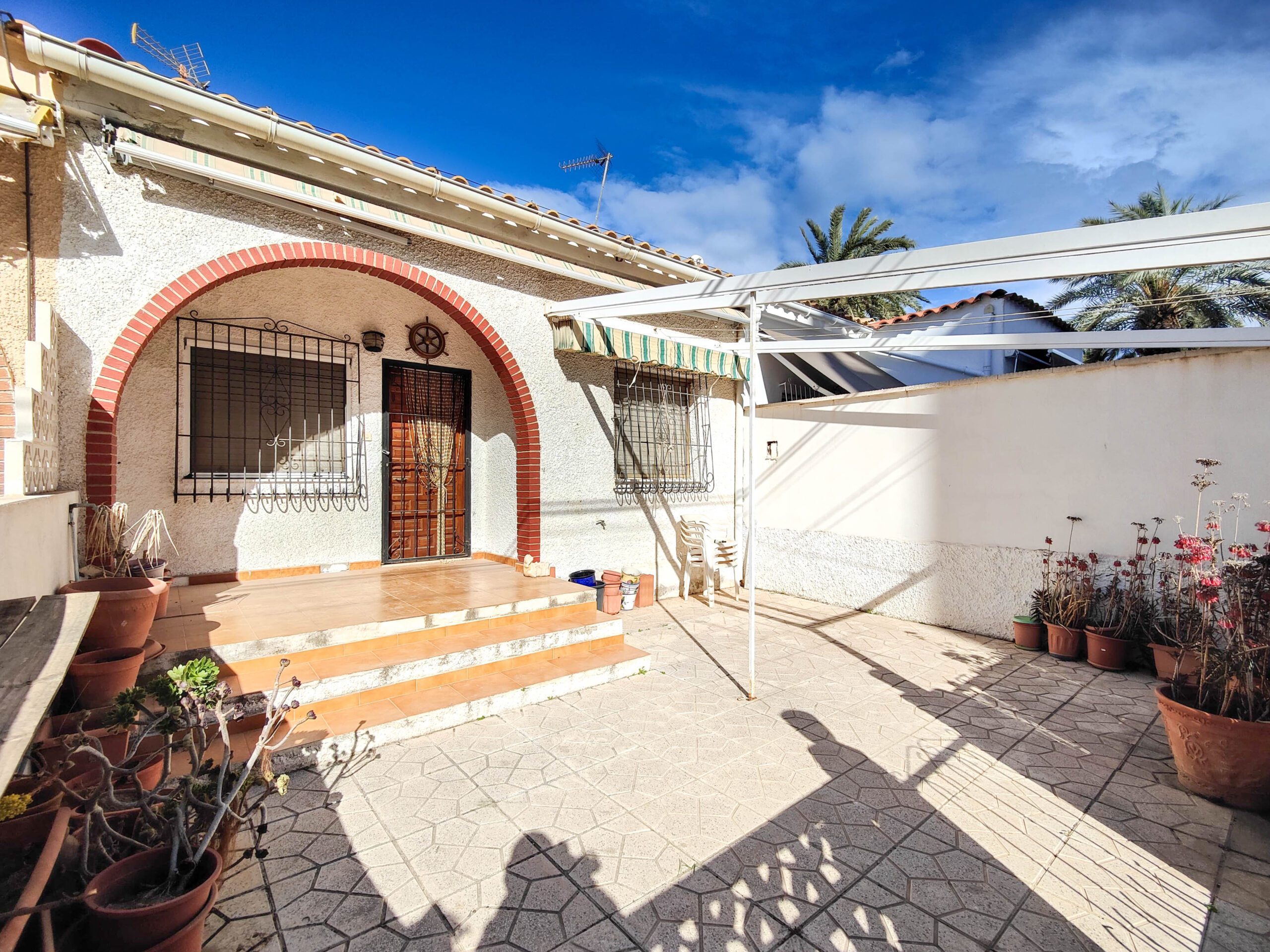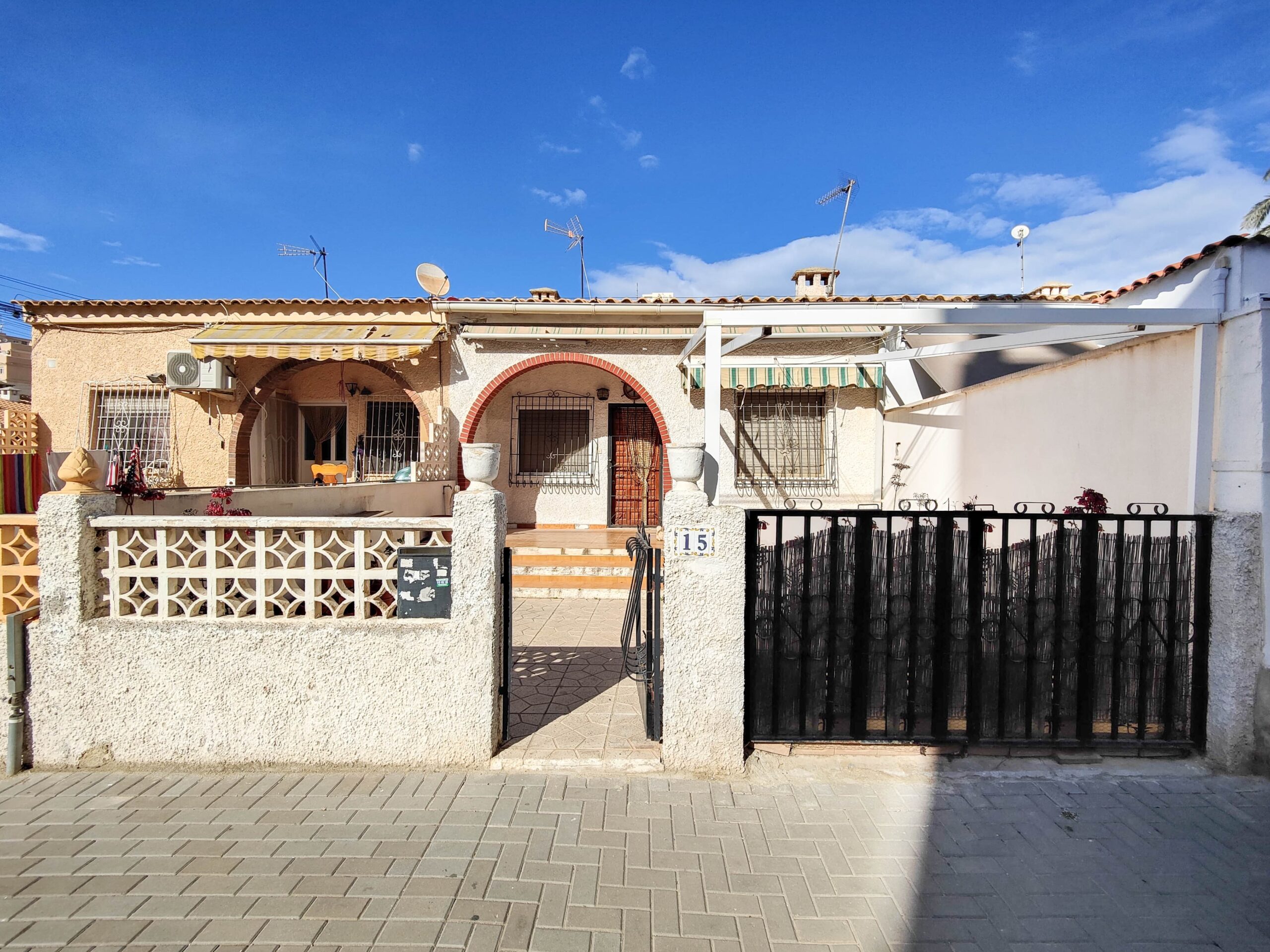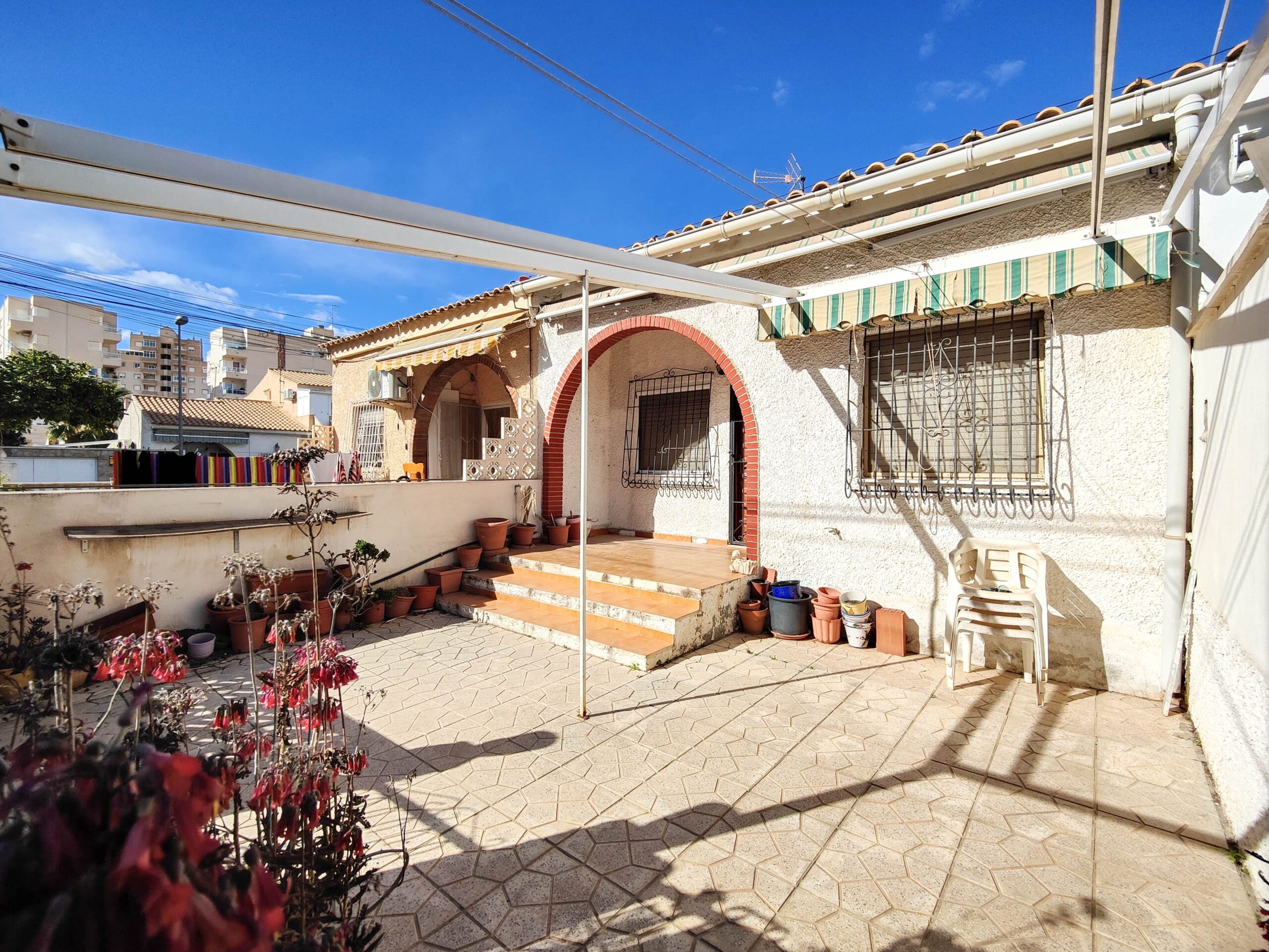Charming south facing bungalow without upstairs neighbours for sale in Nueva Torrevieja. This property is part of a small community with a communal swimming pool. Private outdoor parking space included in the price.