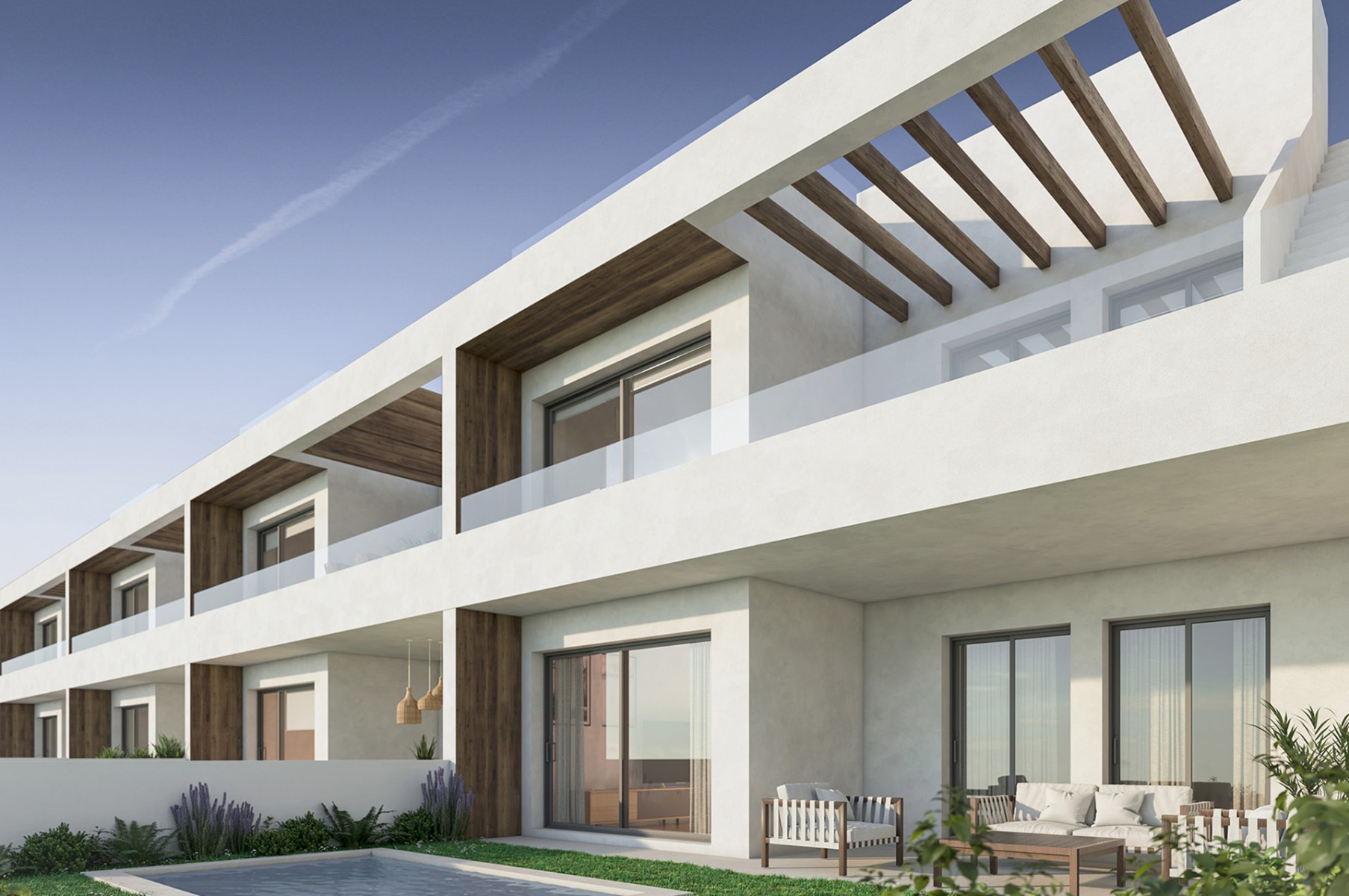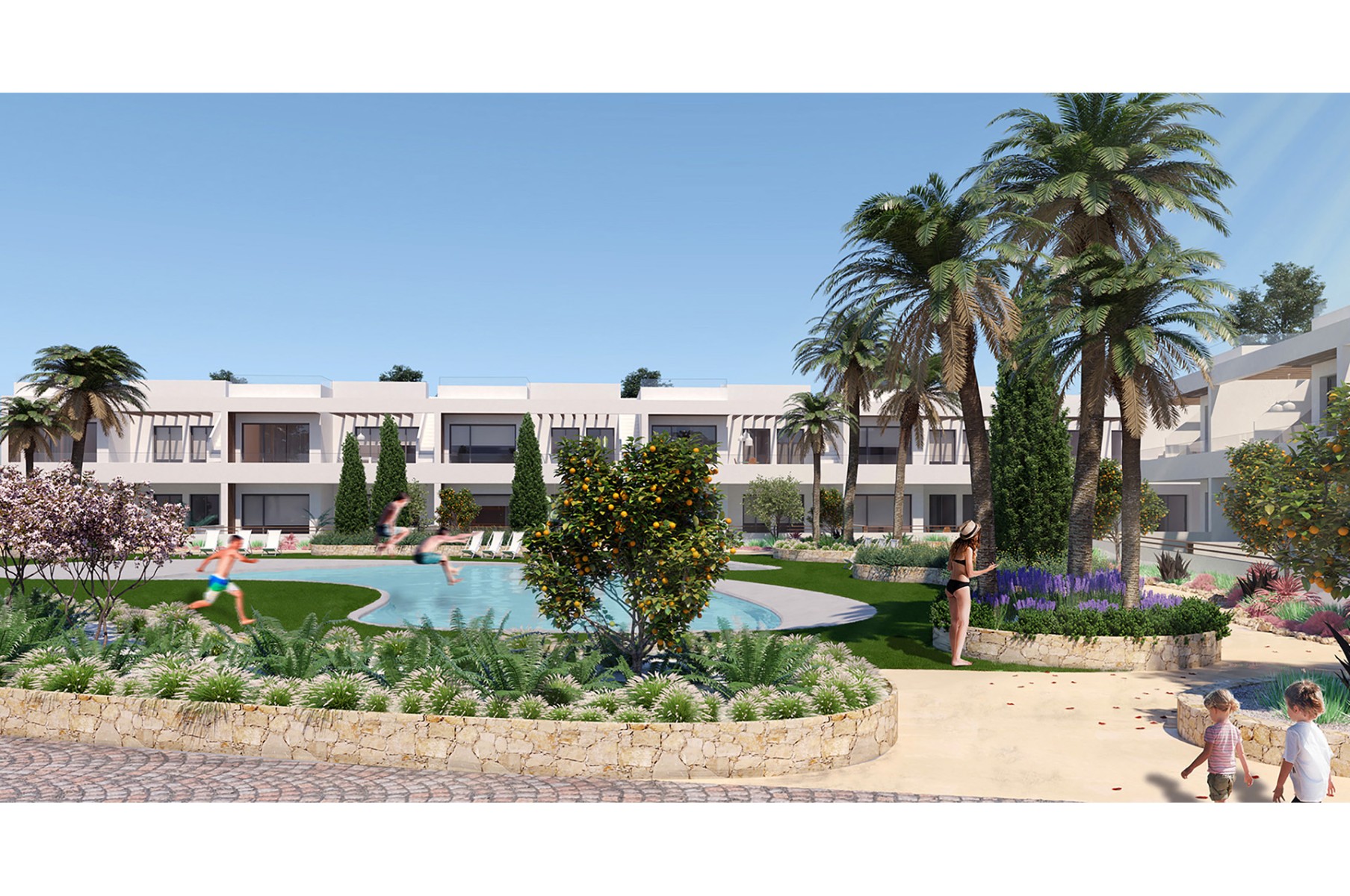 Apartment complex, comprises apartment blocks in two levels, offering apartments with 2 or 3 bedrooms and 2 bathrooms, in a choice of models: ground floor with a large garden; or top floor with private solarium. Both models present an open-plan lounge, dining and kitchen area, opening onto a terrace. For an additional price it is possible to build a pool in the garden of the ground floor apartments, or install a jacuzzi on the solarium of the top floor apartments.