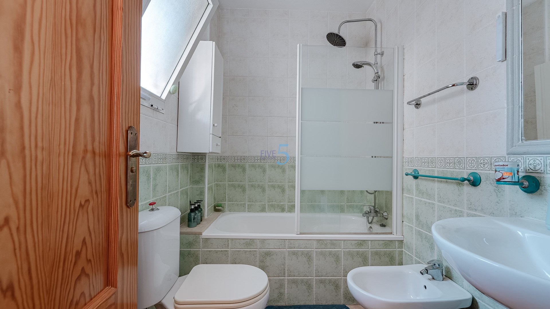 Upstairs, there are two double bedrooms with fitted wardrobes, while the master also benefits from air conditioning, a ceiling fan, and an enclosed balcony currently used as an additional sitting room. The top floor features a private solarium that has been fully enclosed and converted into a third double bedroom with aircon. The property also enjoys access to a lovely communal pool and is sold fully furnished, ready to move into.