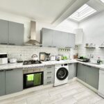 There is open plan reception area leading into the spacious lounge/diner with stylish furniture throughout. From here is easy access into the fully renovated spacious kitchen with quality fixtures and fittings, and featured glass ceiling that brings in lots of natural sunlight.  From the hallway are 2 double bedrooms and a fully modern bathroom with walk in shower.