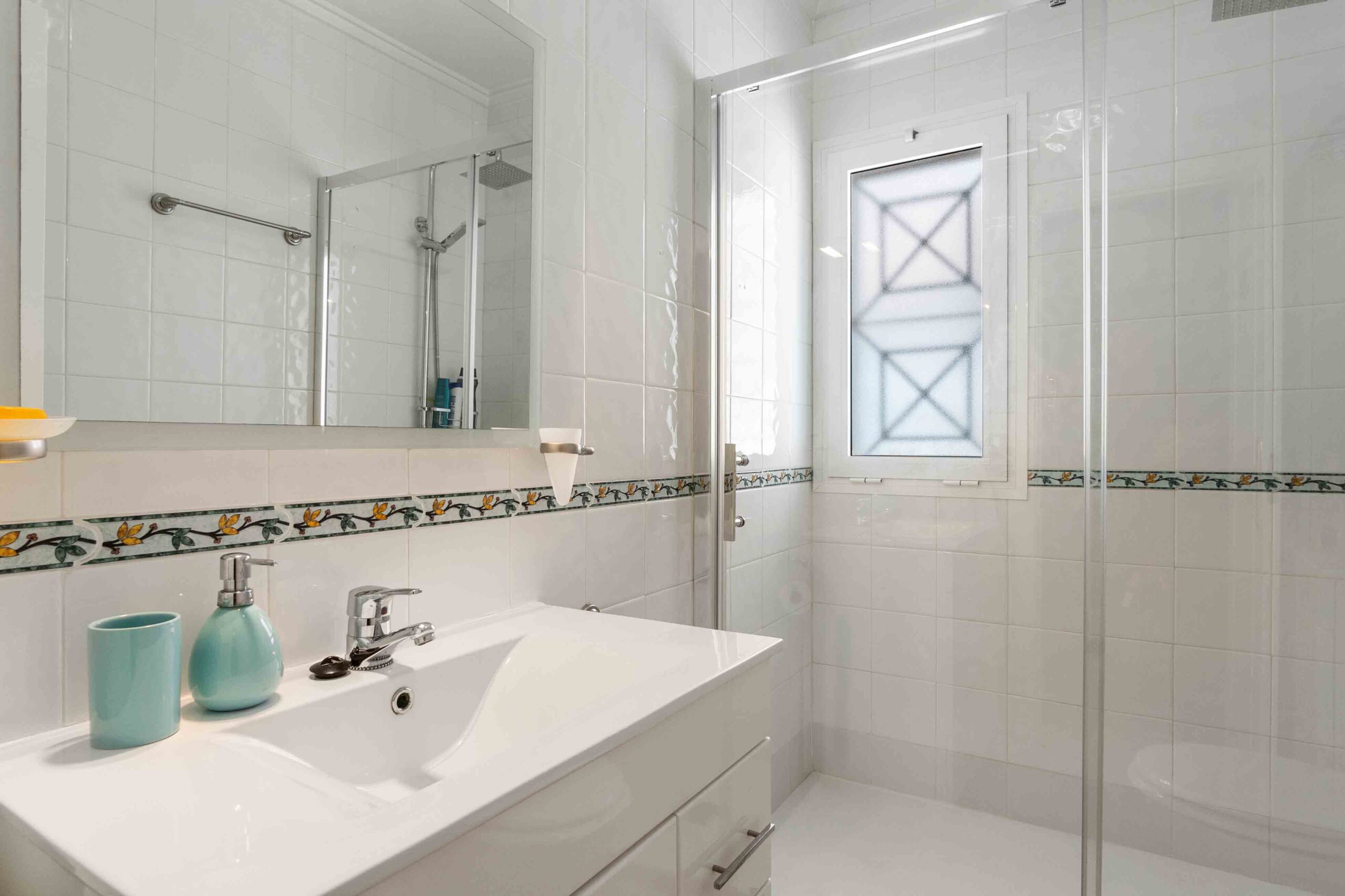 When you enter the premises, you have a large covered area for the car, and a storage room, outdoor shower and a big terrace, where part of the terrace is glazed in.