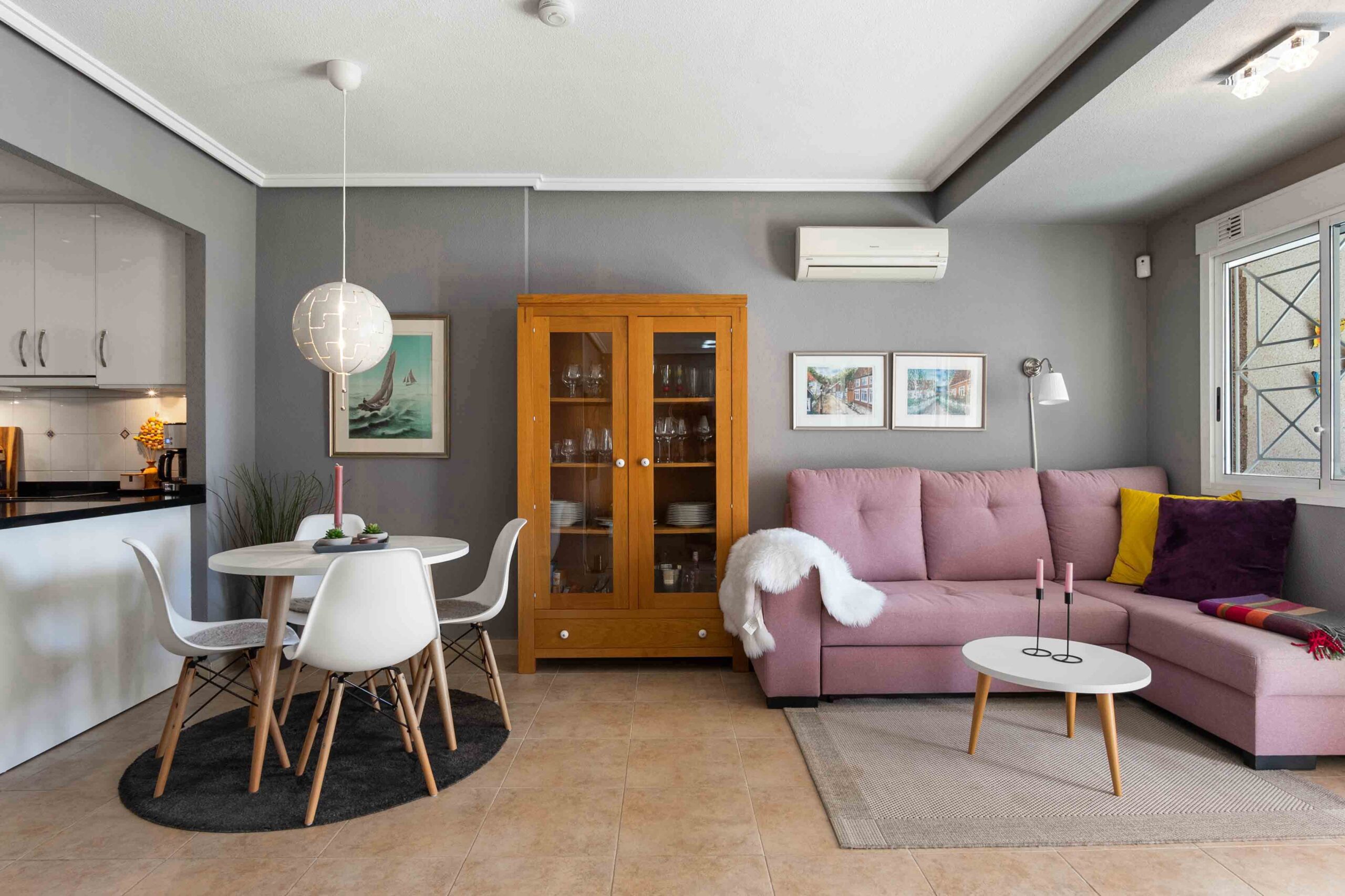 It is within walking distance to everything you need, such as grocery shops, pharmacies, banks, hairdressers, restaurants and bars, and it is approx. 500 meters to the Mediterranean. There is a bus stop just down the street, where the bus will take you to Torrevieja centre or La Mata beach.
