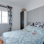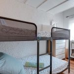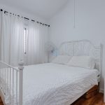 Upstairs, the vaulted ceiling enhances the sense of space. The master bedroom features access to a private terrace overlooking the pool, while two additional guest bedrooms share a modern family bathroom with a walk-in shower.