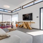 These modern 4 bedroomed villas and 4 bathrooms have a unique design, with an elevated main floor comprising a bright lounge, dining area and kitchen. Also on this level is an en-suite bedroom and guest toilet. There is a terrace off the main entrance, overlooking the garden and pool area. The remaining 3 bedrooms and 2 bathrooms (1 en-suite) are on the floor below, and includes an extra lounge area, opening onto a small patio with access to the garden and pool area.