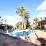 El Chaparral villa with a 1,900 m2 plot and a 380m2 house on two floors, the house has 5 bedrooms, 3 bathrooms, 2 living rooms, an independent kitchen, several terraces, a solarium with unobstructed views, a large pool area with large green areas and a caretaker for the barbecue, it has a guest house with a separate entrance and a beautiful Andalusian patio, a closed garage, the house is sold furnished and equipped, it has oil central heating, air conditioning.