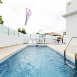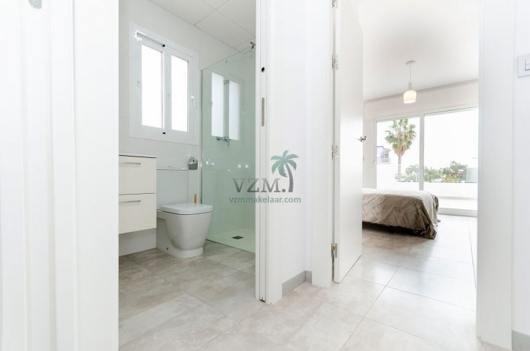 These villas are very luxuriously finished, including Compact quartz worktop in the kitchen, domestic hot water installation, automatic roller shutters, private swimming pool with shower, closed individual plot with black and metal fencing.