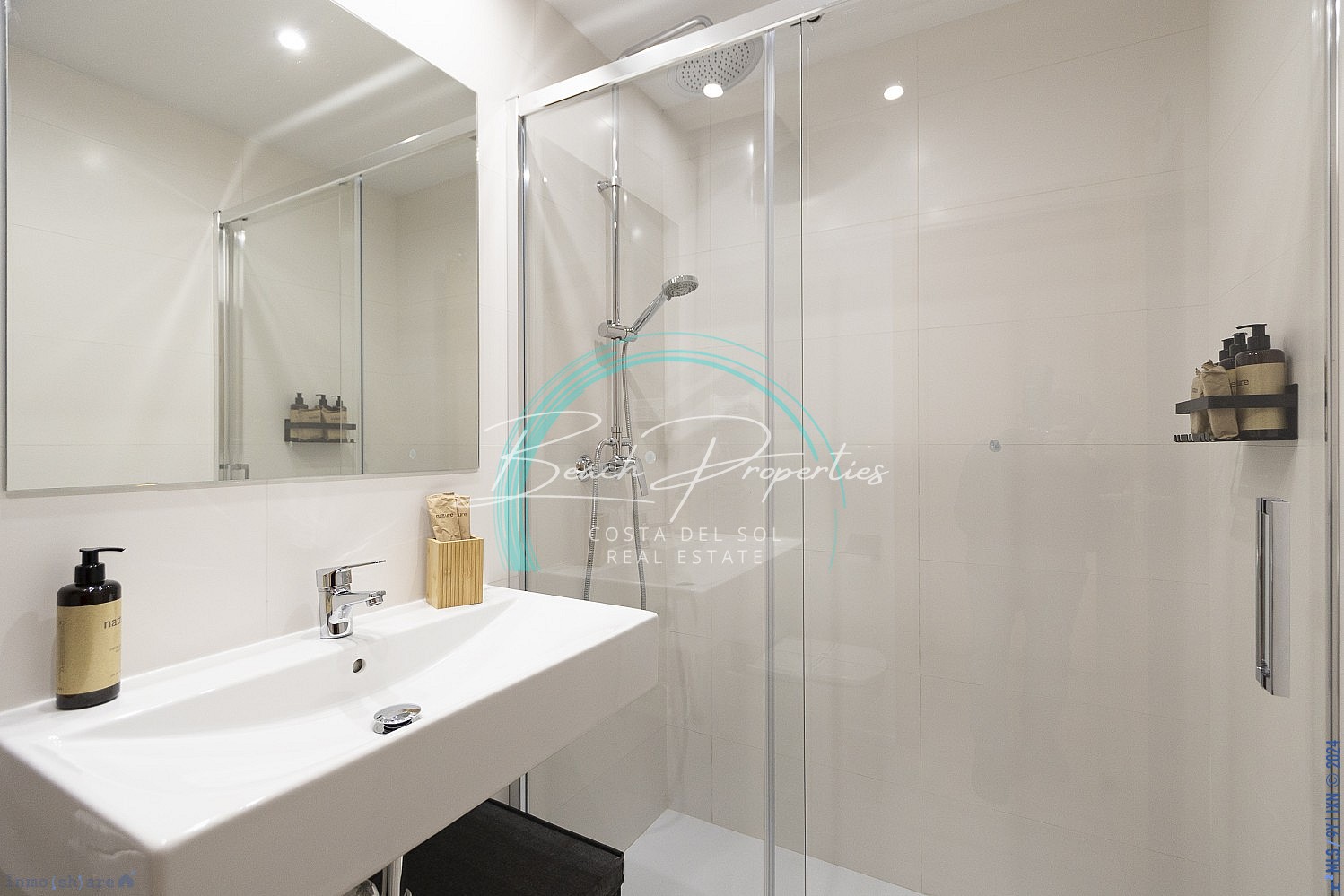 Apartment in Torrox Costa with sea view just twenty meters from the sea. The building was constructed 2012, the flat reconstructed january 2024, so it is brand new. There are two beds, two baths in 63 m2 of a living space area, constructed area is 75 m2. To the property belongs parking space and a storage. Apartment is in low floor. Building disposes of a lift. Check the photos and do not hesitate to ask more information !! OPORTUNITY !!