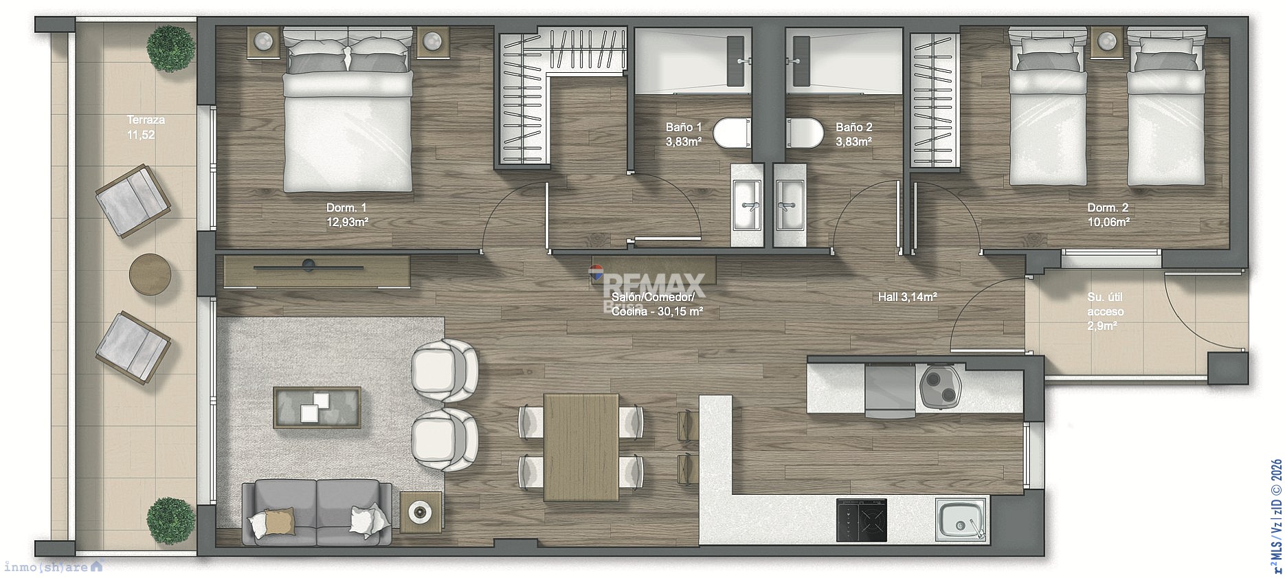 New build homes from €206,000! Discover your new home in an exclusive residential with the best qualities and finishes. Homes designed for maximum comfort, with modern and functional architecture. Exceptional qualities: Structure and façade: Solid construction with reinforced concrete foundations and facades with high-efficiency thermal and acoustic insulation. Exterior carpentry: Lacquered aluminum windows with thermal break and double glazing for excellent insulation. Roll-up aluminum blinds in bedrooms. Interior carpentry: White lacquered doors and modular built-in wardrobes with textile finish inside. Floors and wall tiles: Porcelanosa wood-effect vinyl flooring and smooth white paint throughout the house. Kitchens and bathrooms with ceramic wall tiles by Porcelanosa. Fully equipped kitchen: High and low units with worktop, as well as oven, ceramic hob and extractor hood included. Modern bathrooms: Porcelanosa sanitary ware and taps , with resin shower trays and under sink furniture in the main bathroom. Common areas and equipment: Communal swimming pool with solarium, showers and perimeter fencing. Community gardens and orchards with irrigation and lighting. State-of-the-art elevators with stainless steel finishes. Parking with automatic gates and pre-installation for electric vehicle charging. Video intercom and telecommunications with TV and telephone sockets in the living room and bedrooms. Pre-installation of ducted air conditioning in living room and bedrooms. Aerothermal hot water system, more efficient and sustainable. Live in a unique environment with all the comforts, surrounded by garden areas and with excellent connections. Don't miss this opportunity! Contact us for more information and come and see your future home.