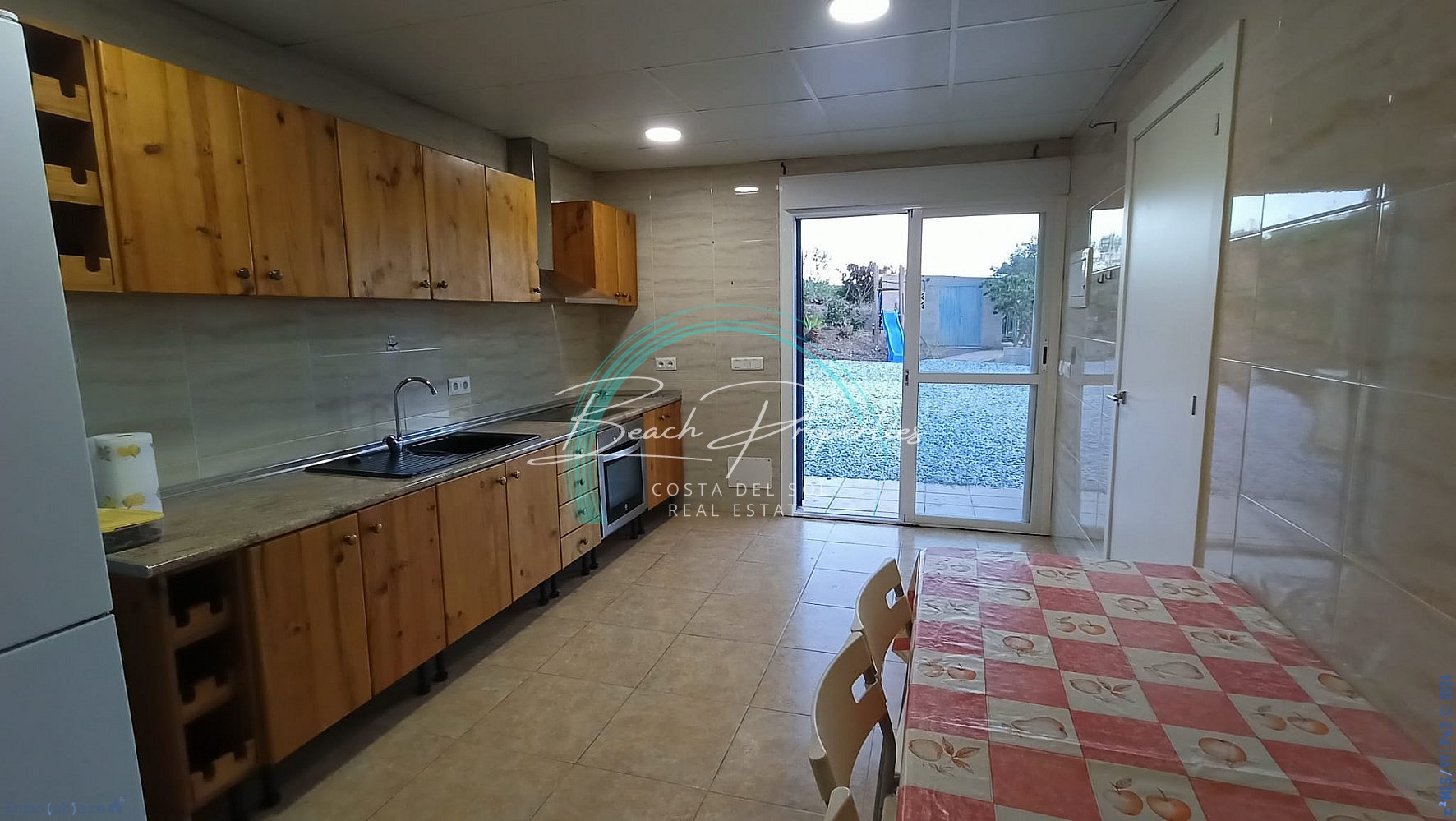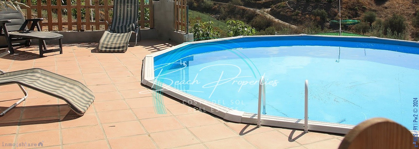 Plot of 4800 meters. House with 72 meters. It has 3 bedrooms, 1 bathroom with bathtub, a living room and a kitchen. It has air conditioning. It has a 20-meter implement, swimming pool, solarium. Henhouse. 300 mangoes in production, they are  9 years old. Variety in fruit trees such as olive trees, persimmons, lemon trees, medlars, orange trees, apple trees, vineyards,..