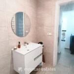 The independent kitchen is fully fitted and benefits from natural light and a practical layout. The main living area leads to two spacious double bedrooms, both with en-suite bathrooms. The third double bedroom, also en-suite, has its own separate access from the rear terrace, making it ideal as a private guest suite.