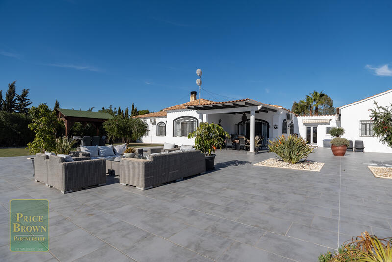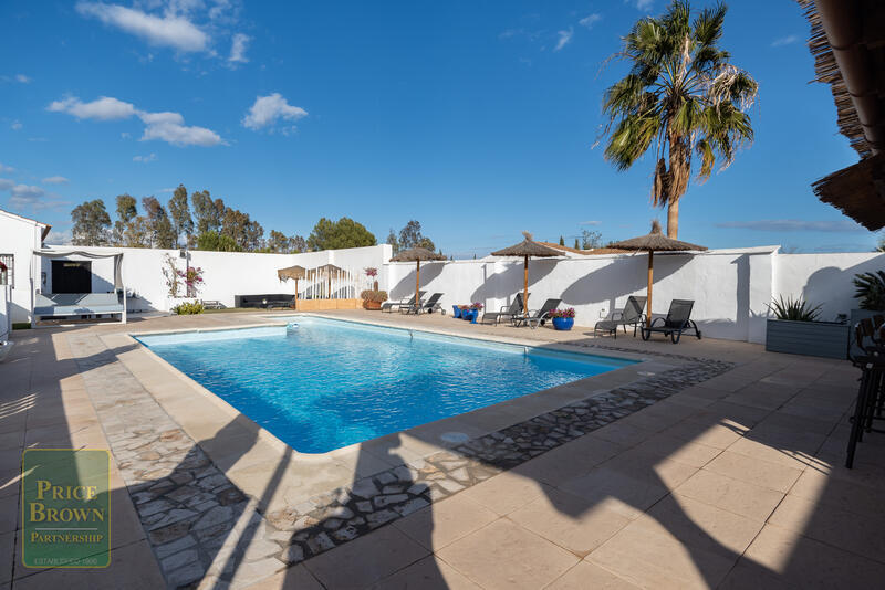 Cañada del Palmar, Turre: Superbly stylish detached property constructed over one level situated on a large flat plot of land that is completely fenced. The gardens and the pool areas are immaculate and the mountain views are beautiful. There is so much outside space to enjoy and within the pool area is an outside bar with all of these areas exposed to the wonderful mountain views.