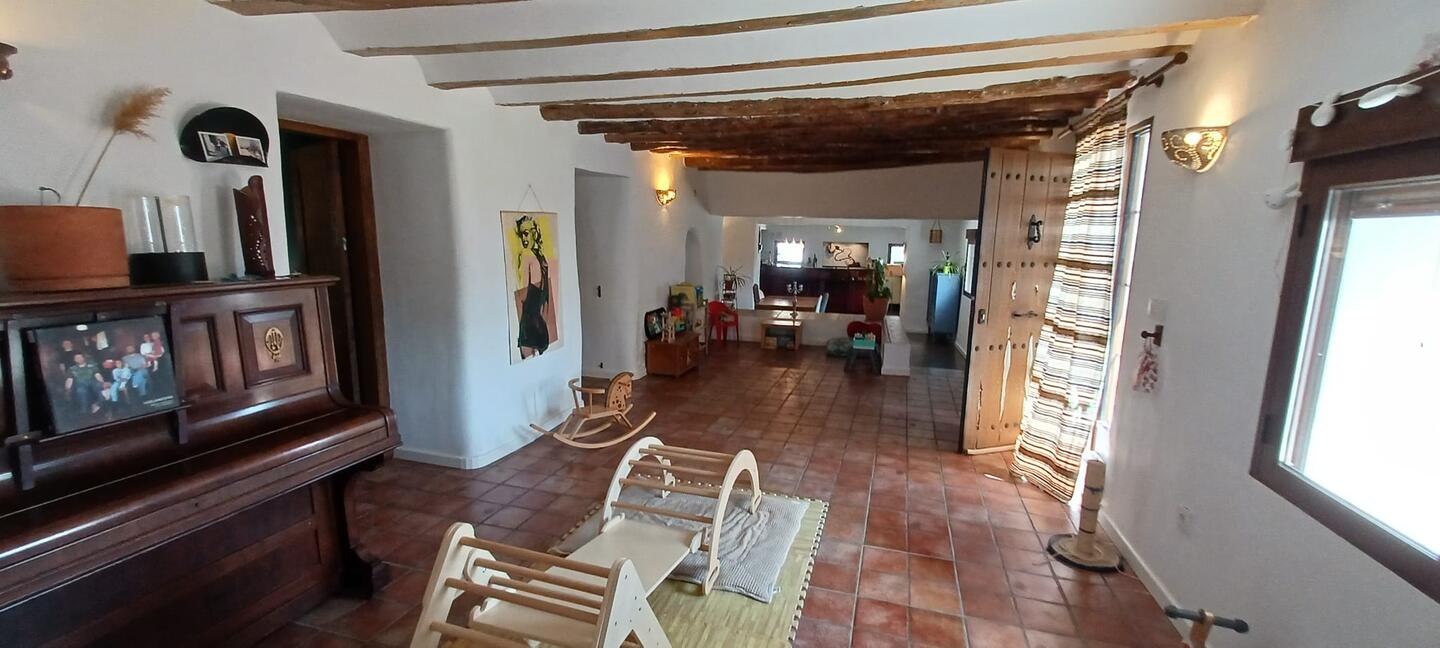 The land itself is a standout feature, with a natural barranco running through the property providing year-round water flow, as well as multiple wells. There are agricultural water connections on both the upper and lower parts of the land, with licensed irrigation rights in place.