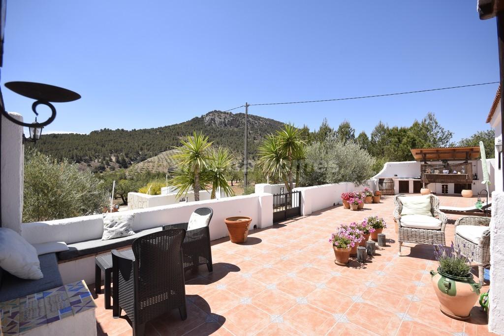 Exclusively presented by Almeria Homes - This beautifully renovated property in the Velez Rubio area combines traditional character with modern comforts, offering an ideal retreat for those seeking tranquility and stunning views. This detached property features three bedrooms and one bathroom, set on an expansive plot planted mainly with productive almond trees, ensuring a serene environment with impressive 360º views over the surrounding mountain ranges.