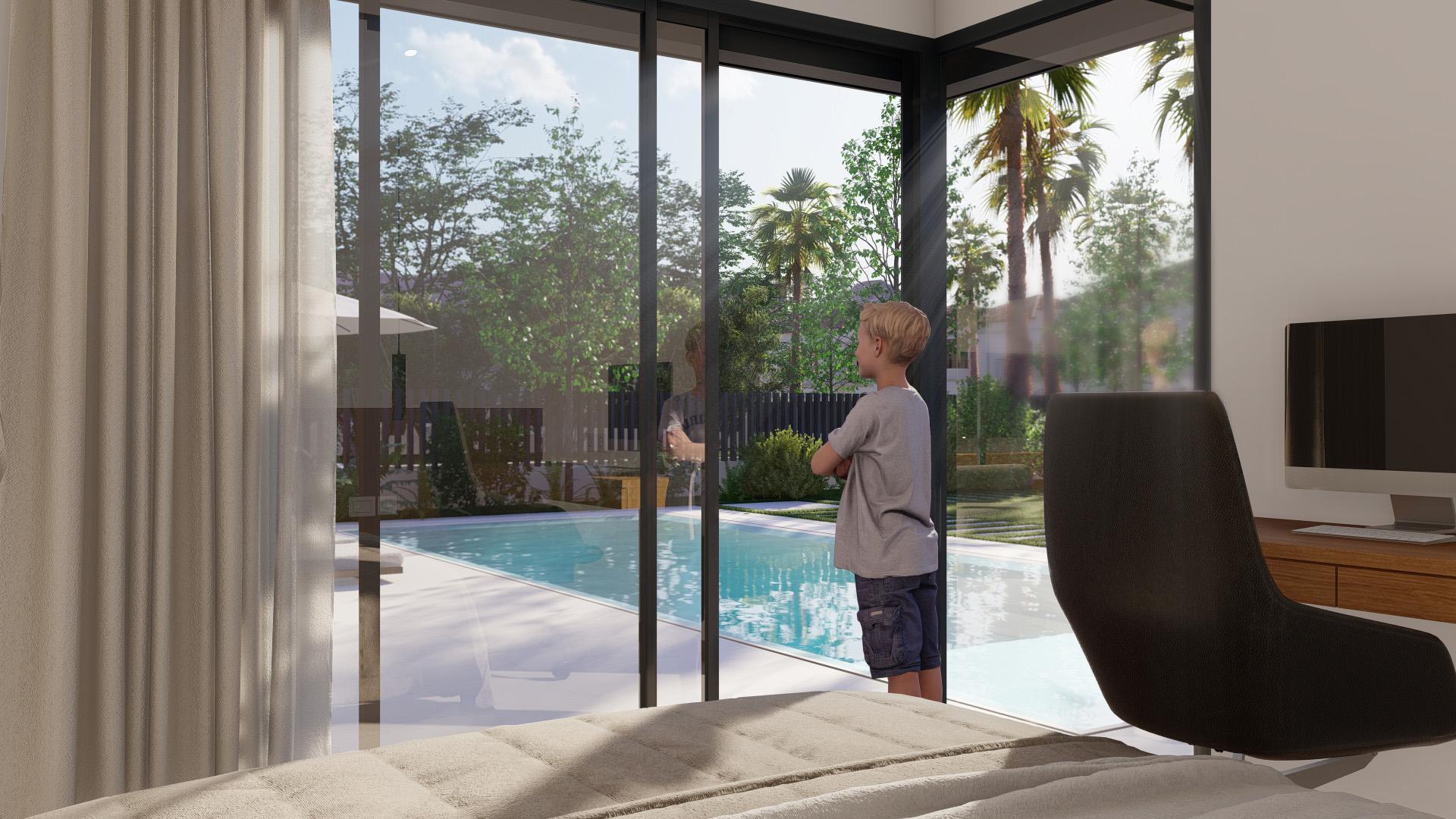 Constructed with top quality materials, large windows, terraces, garden, 8m x 4m swimming pool, barbecue area and the possibility of having a gym, wine cellar, guest room, and children's room.