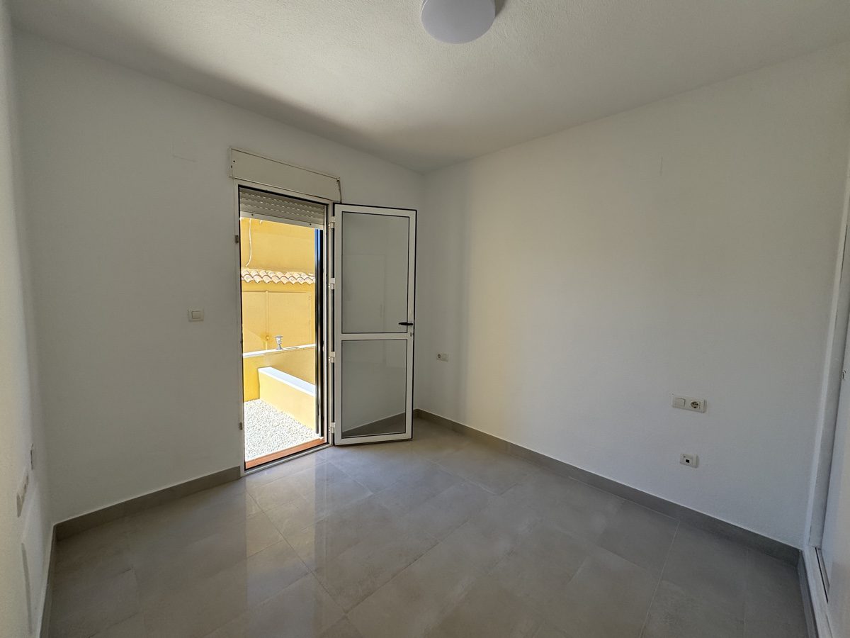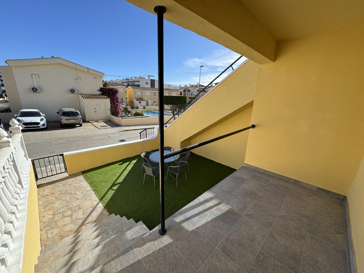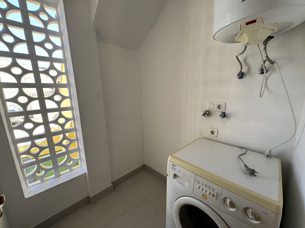 This recently reformed 2 bedrooms, 1 bathroom ground flor apartment is located on Lomas Del Golf in Villamartin. Offering both front and rear gardens, covered terrace with spacious lounge and open plan kitchen area with separate utility room. Both bedrooms are of similar size and share a family sized bathroom. Located just minutes walk from local amenities include the Villamartin Golf Course and Plaza. The property is the perfect holiday home and part of a well maintained community offering 9 communal pools.