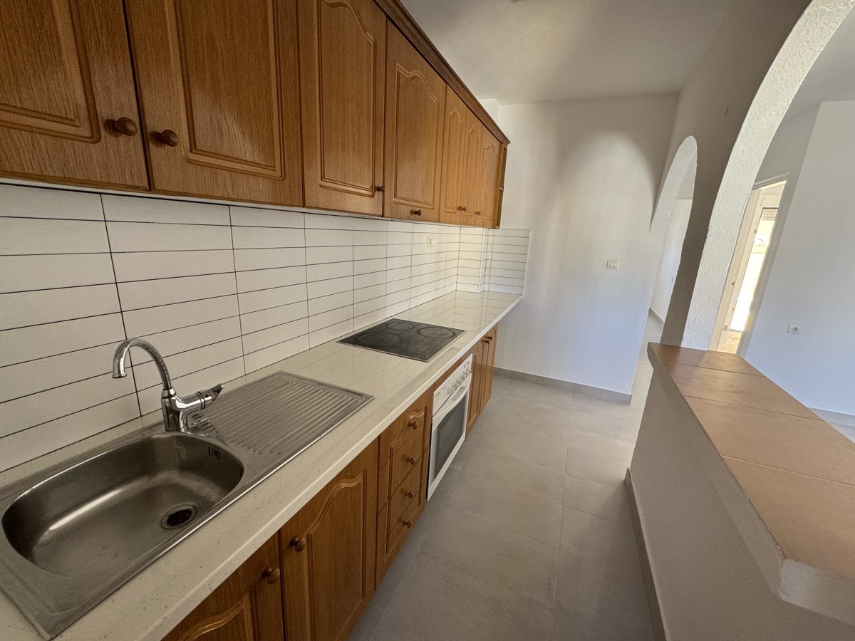 This recently reformed 2 bedrooms, 1 bathroom ground flor apartment is located on Lomas Del Golf in Villamartin. Offering both front and rear gardens,