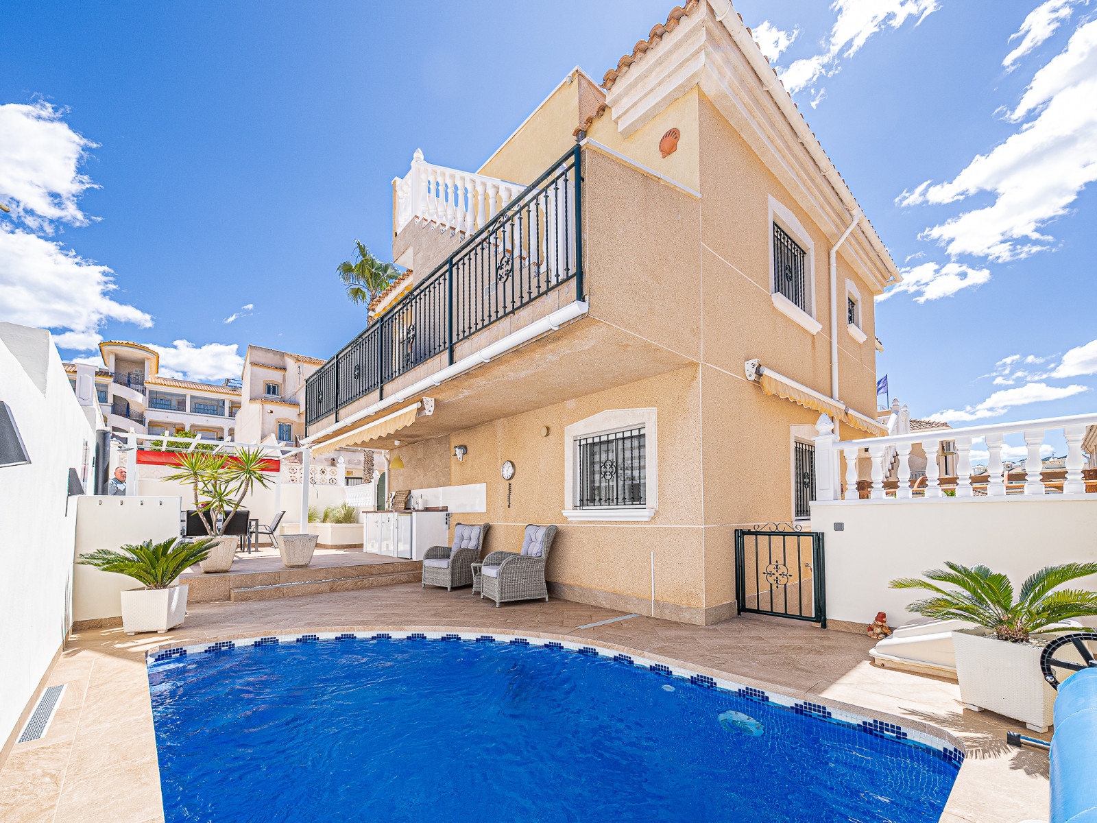 Discover the charm of Villa Tialta, a stunning detached villa perfectly positioned in the sought-after Montegolf community of Villamartin. This beautifully maintained property offers generous living space across two fully independent levels, making it ideal for larger families, extended stays, or a high-potential rental investment.