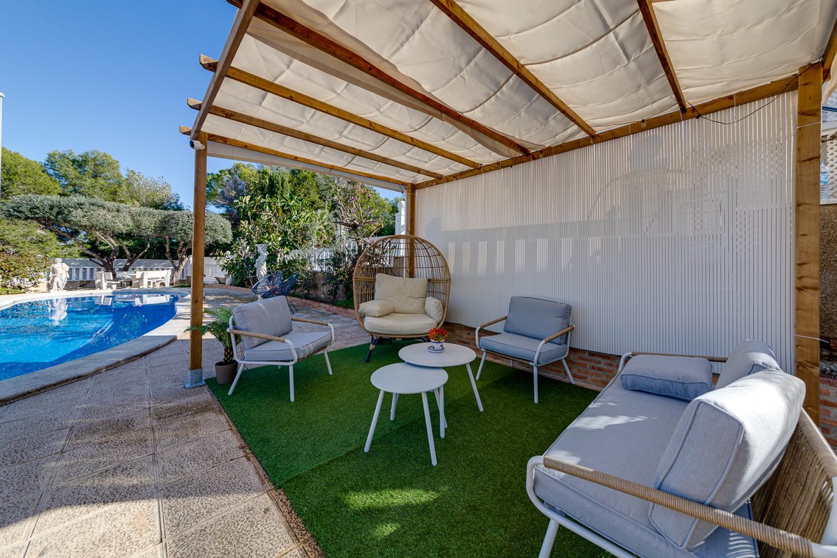 This well presented 4 bedrooms, 2 bathrooms Villa is located on a large plot of 550m2 with an impressive 164m2 living space. Situated on Pinada Golf 1