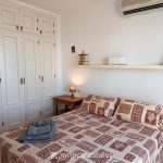 Master bedroom with double bed (1.50m wide), built in wardrobe, air co unit ( coin operated) and patio doors leading out to terrace