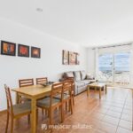 The comfortable lounge and dining area is fitted with centralised air conditioning, Spanish television and WiFi connection. Patio doors open onto the covered terrace, where you can enjoy sea views and outdoor dining.