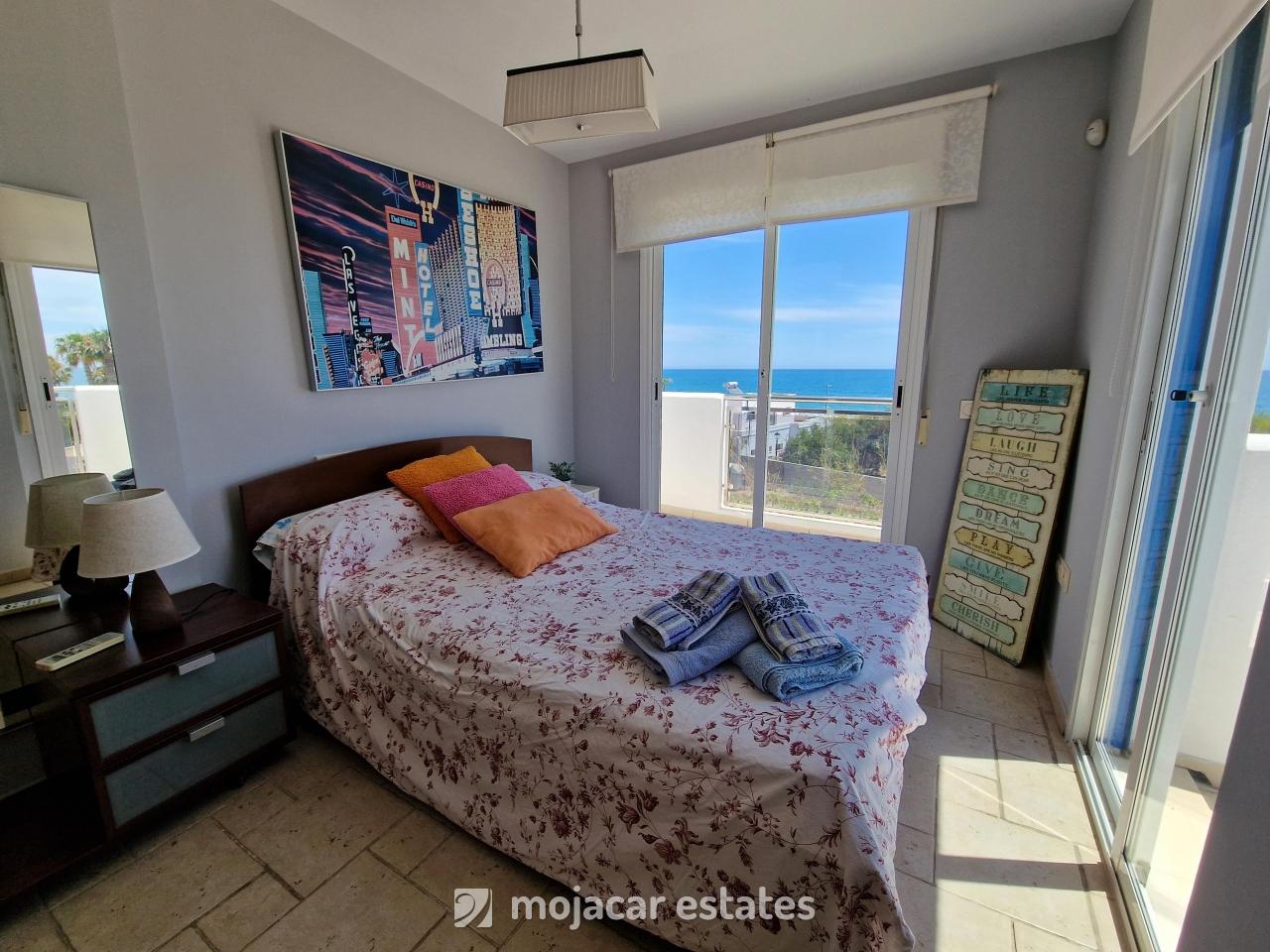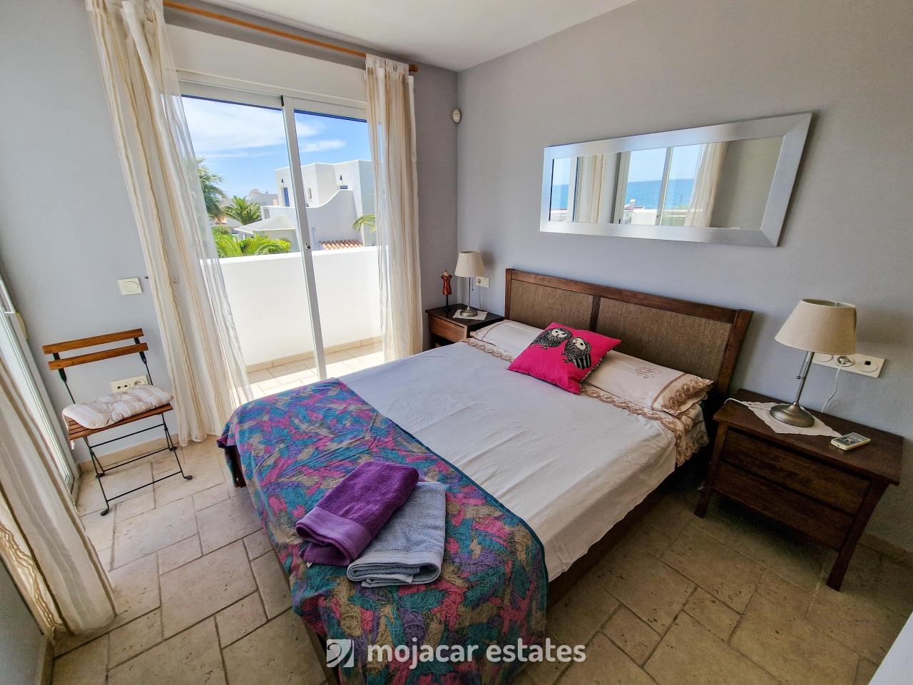 Master bedroom upstairs with double bed, built in wardrobe, air conditioning and access to balcony with views towards the sea and the old village of Mojacar.