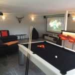 The lower level is dedicated to leisure, featuring a cinema and games room, sauna, gym, storage, and private parking — creating the perfect entertainment hub for family and guests.