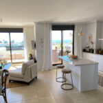 The property features a bright open-plan living and dining area with direct access to a private terrace overlooking the golf course — perfect for morning coffee or sunset drinks. The fully equipped kitchen allows for easy self-catering, and there is an additional living/work space that can be used as a quiet office or a separate play area for children.
